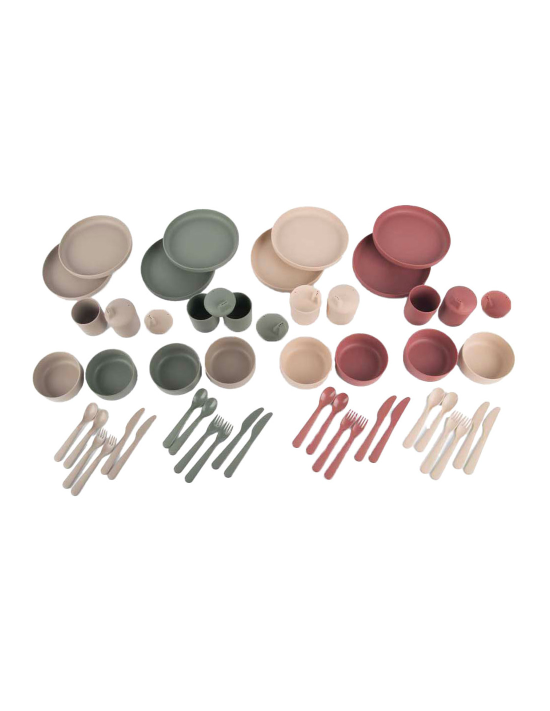 Uitgebreide serviesset van Dantoy in vrolijke kleuren, perfect voor gezellige eetmomenten met kinderen. Deze 56-delige set bevat borden, bekers, kommen, bestek en een kan - alles in een stevig, kindvriendelijk ontwerp. Gemaakt van BIOplastic, een duurzaam en voedselveilig materiaal op basis van suikerriet. Ideaal voor gebruik thuis, maar ook zeer geschikt voor gastouders en kinderopvanglocaties. Lichtgewicht, stevig en eenvoudig schoon te maken in de vaatwasser.