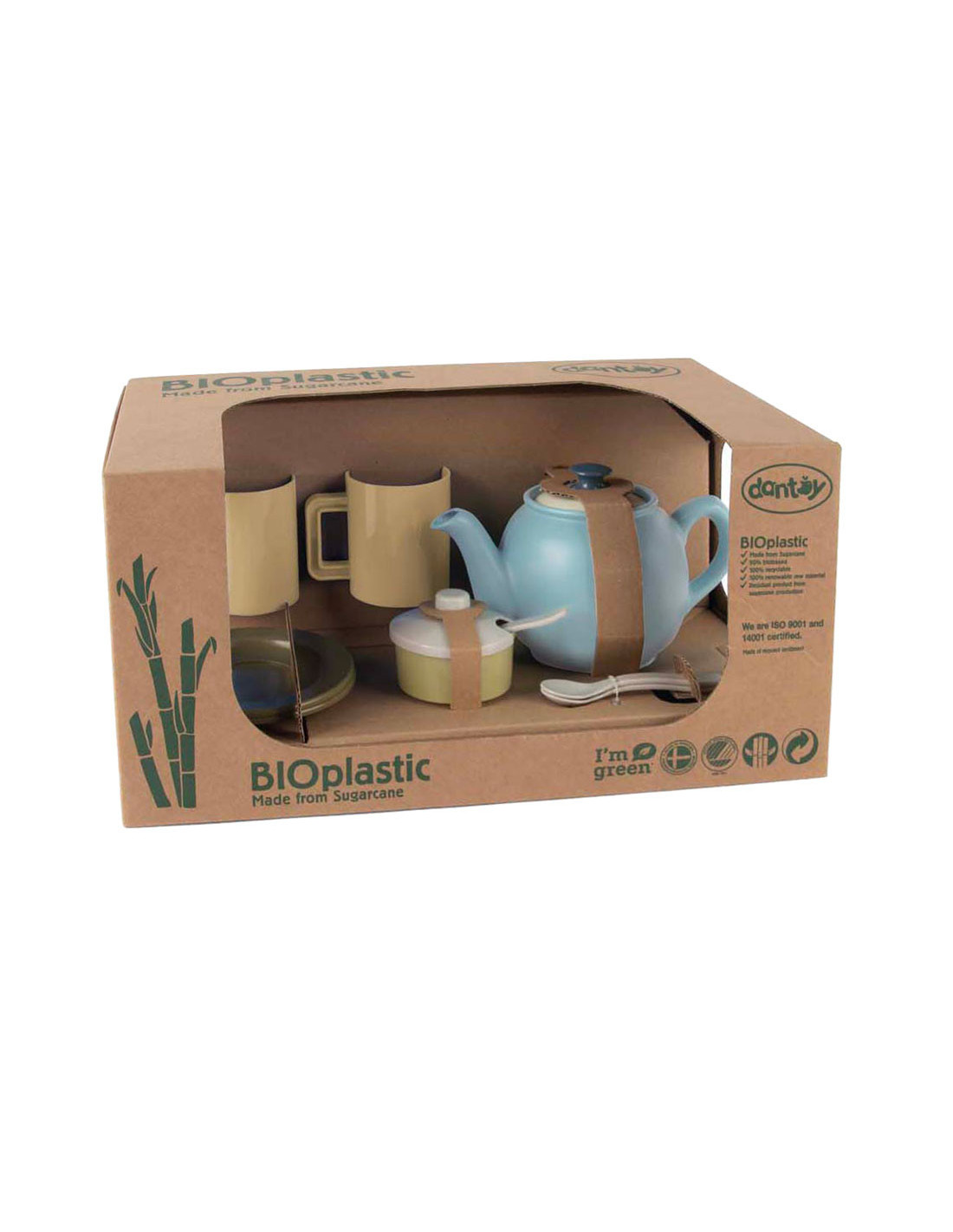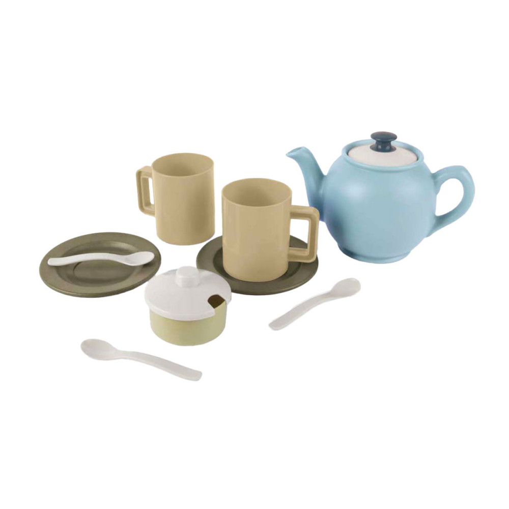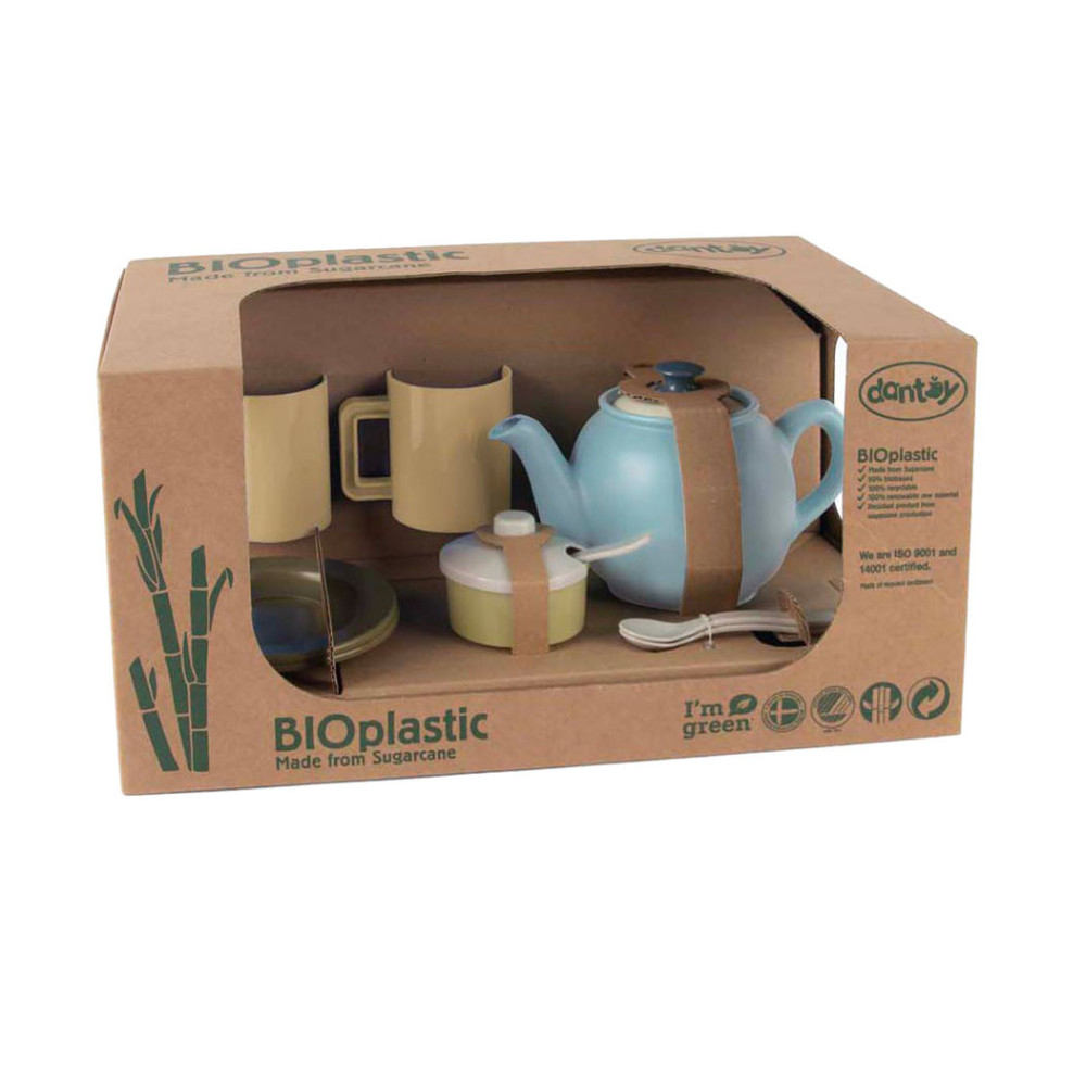 Dantoy theeservies, 11-delig, gemaakt van BIOplastic (suikerriet). Lichtgewicht, stevig en vrij van schadelijke stoffen, geschikt voor kinderen vanaf 2 jaar.