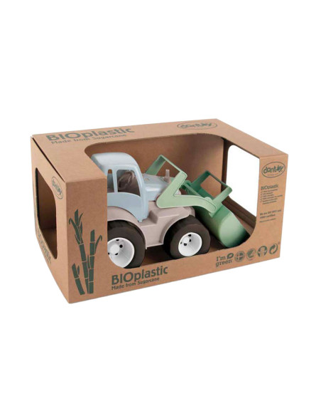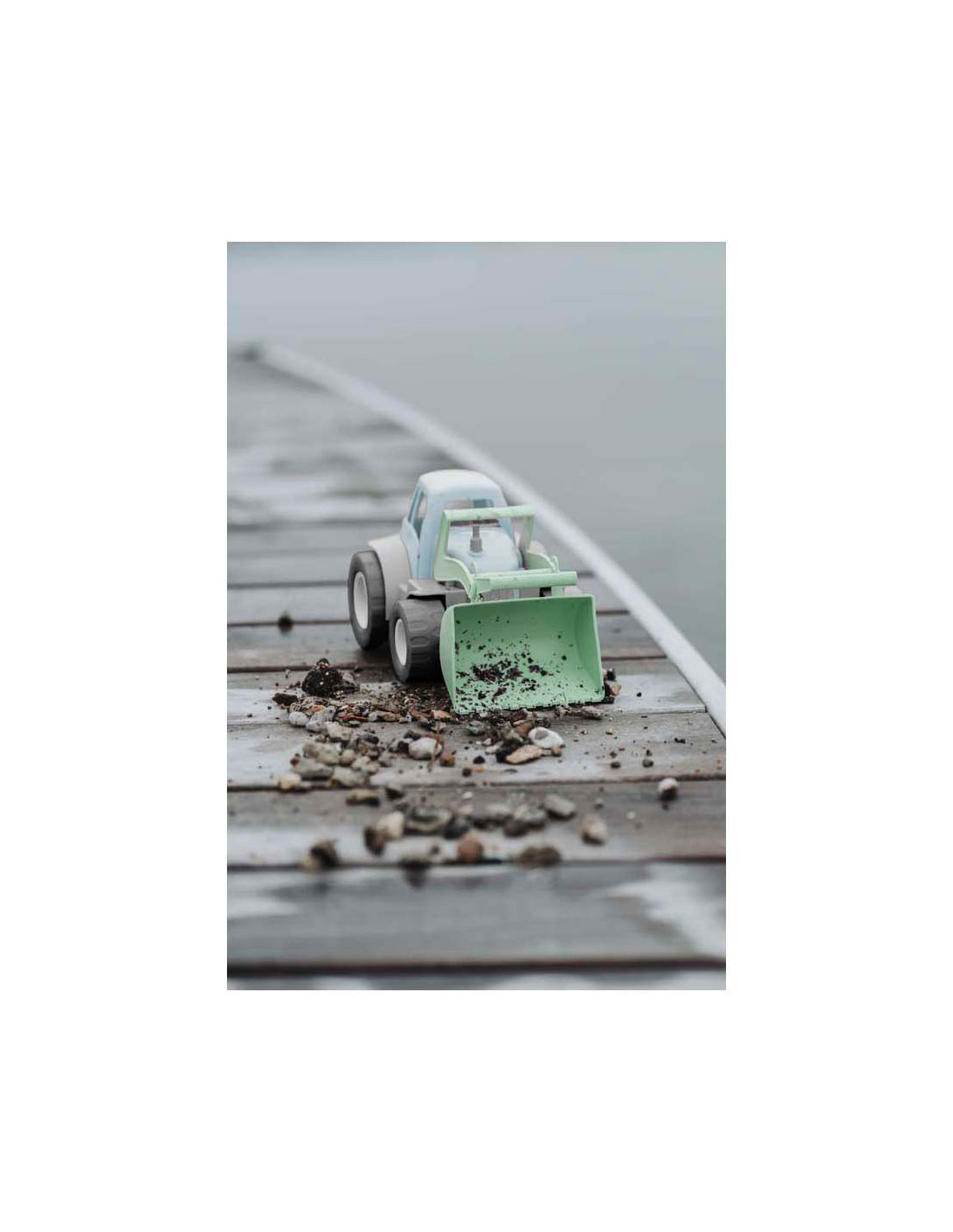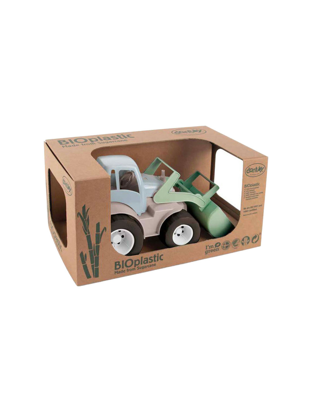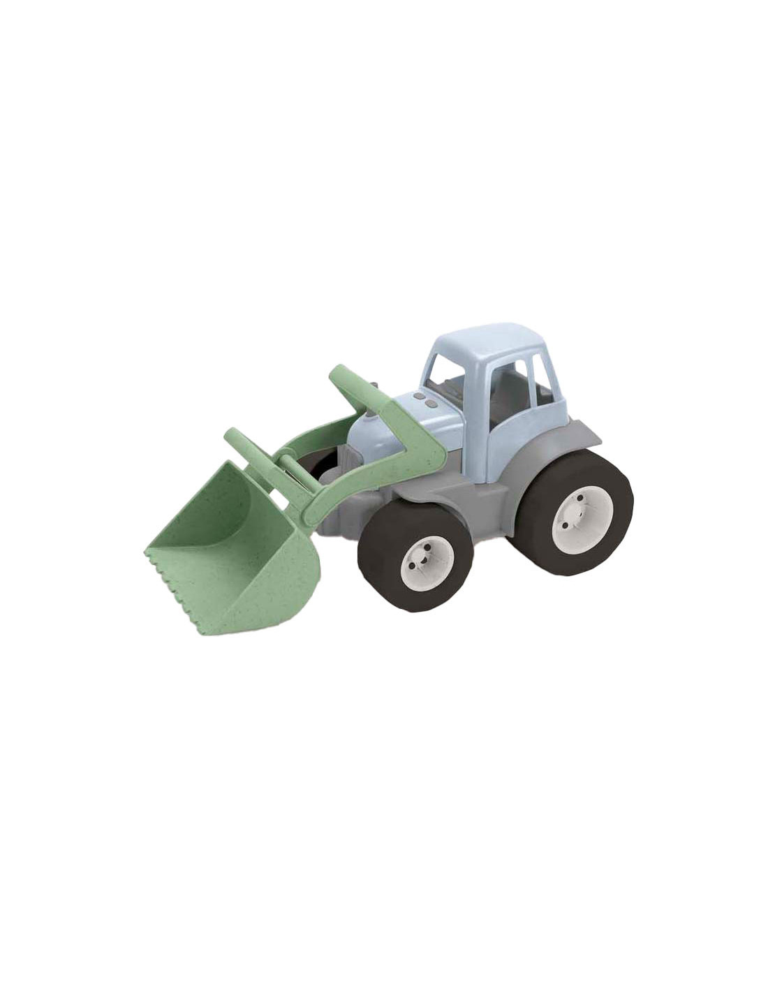 Dantoy tractor met voorlader van ca. 30 cm lang in pastel groen, blauw en grijs. Gemaakt van BIOplastic (suikerriet), stevig, makkelijk te besturen en vrij van schadelijke stoffen, geschikt voor kinderen vanaf 2 jaar.