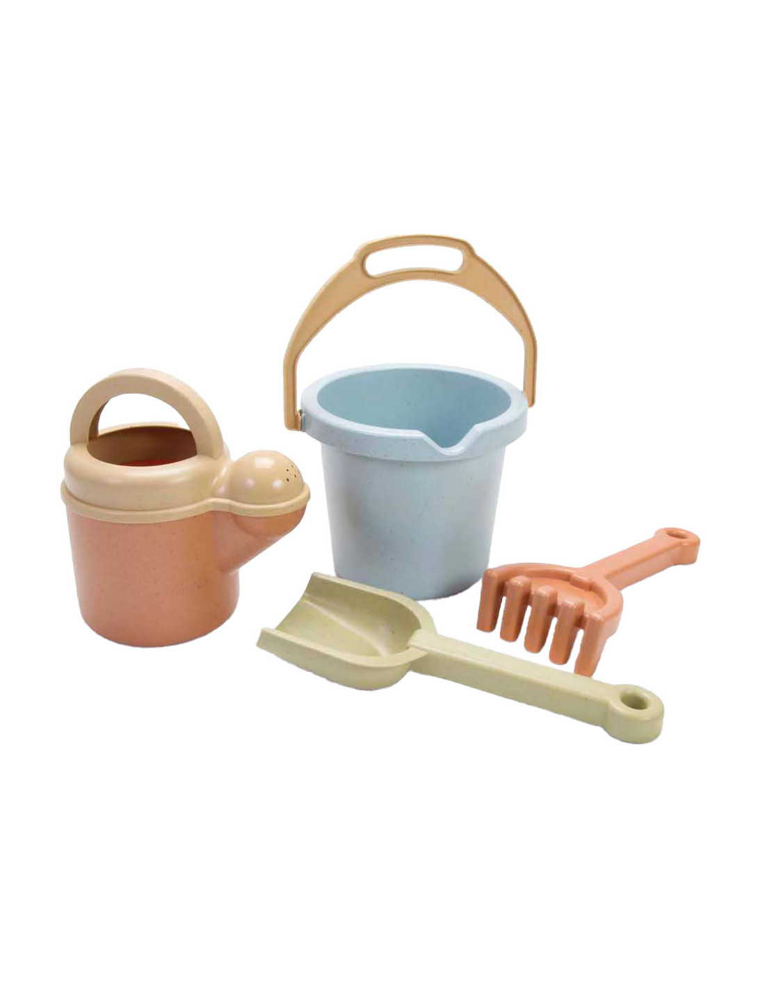 Dantoy zand- en waterset, 4-delig, met gieter, emmer, schepje en harkje. Gemaakt van BIOplastic (suikerriet), lichtgewicht, stevig en vrij van schadelijke stoffen, geschikt voor kinderen vanaf 2 jaar.