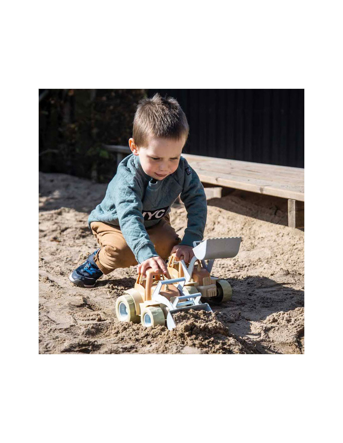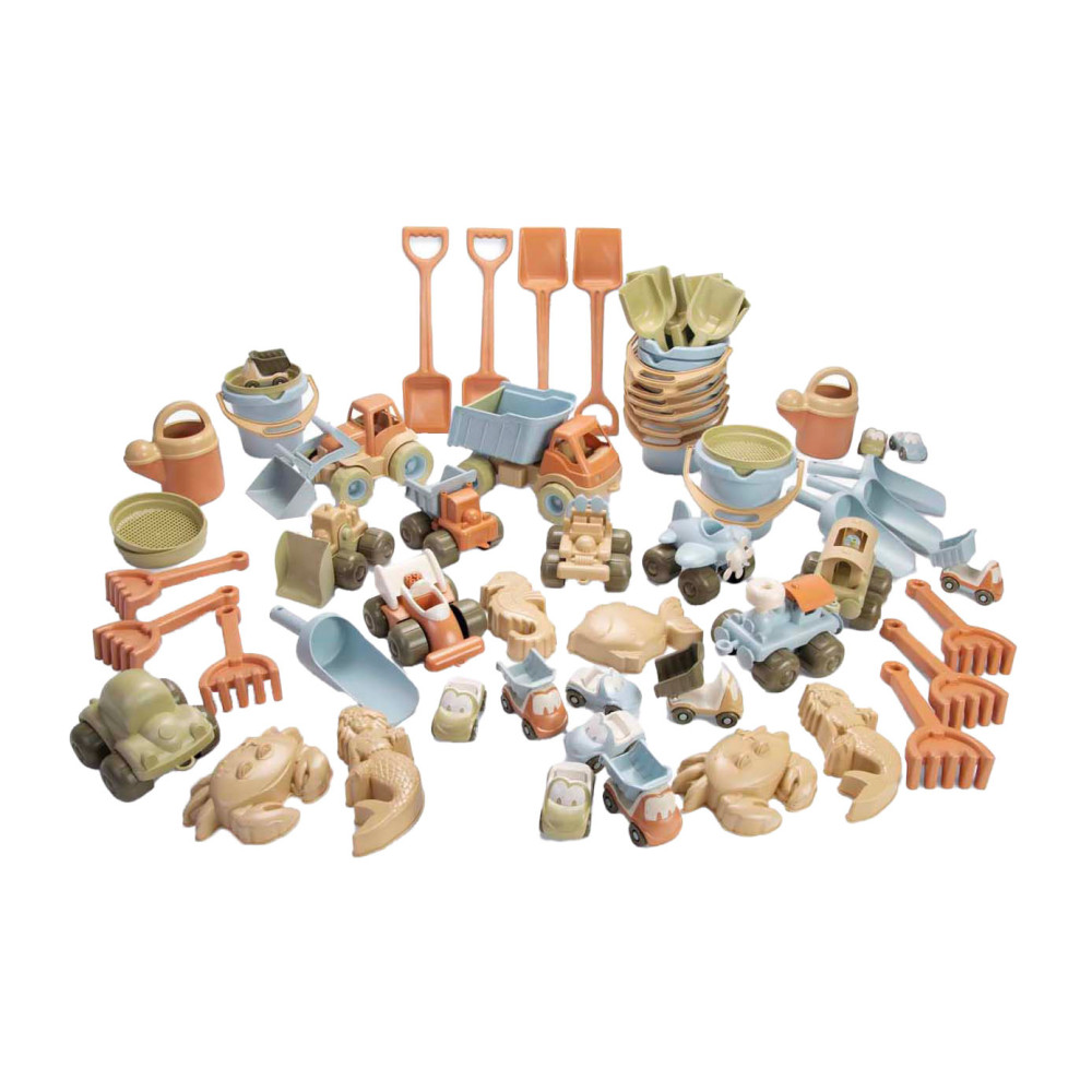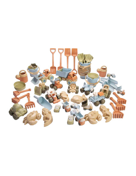 Dantoy BIO zandset met voertuigen, 62-delig. Gemaakt van BIOplastic (suikerriet), duurzaam, veilig en geschikt vanaf ± 2 jaar.
