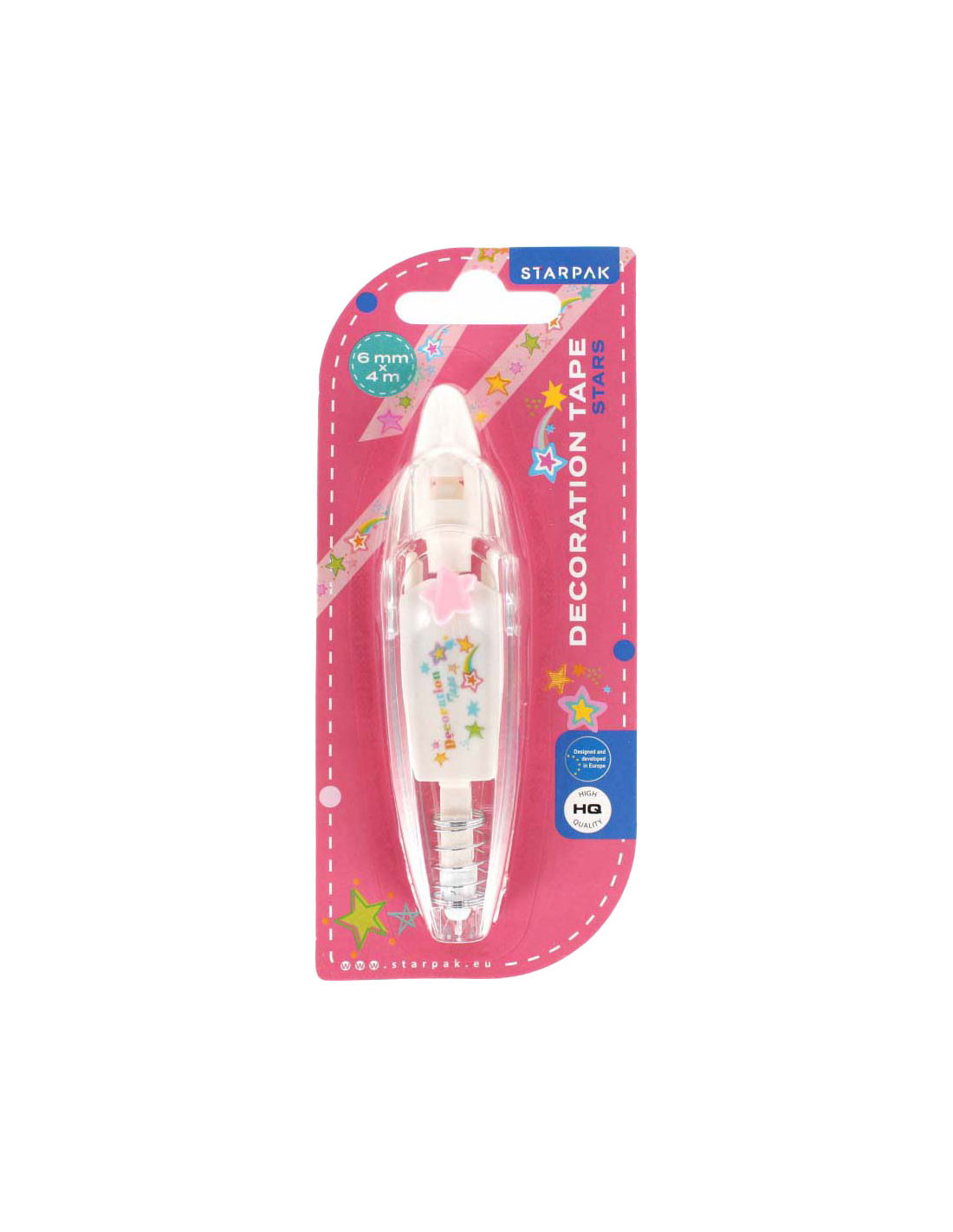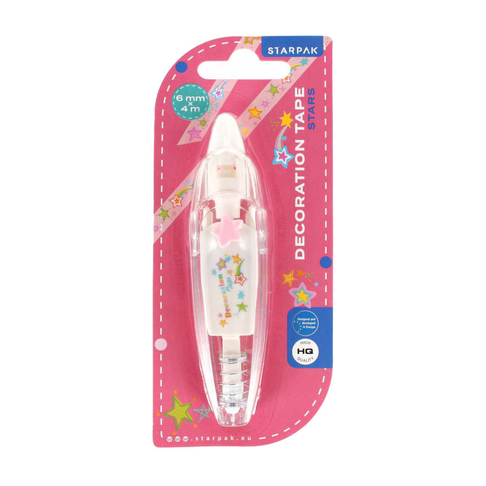 Decoratief sterren tape op dispenser. Op de dispenser zit 4 meter aan 6mm dik tape. Geschikt voor kinderen vanaf 3 jaar.