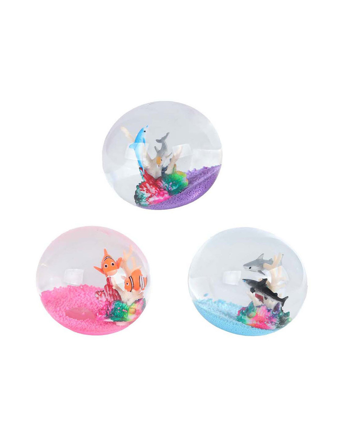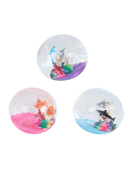 Transparante (anti-stress) bal met zeedieren. De bal is ca. 9 cm groot en geschikt voor kinderen vanaf 3 jaar.