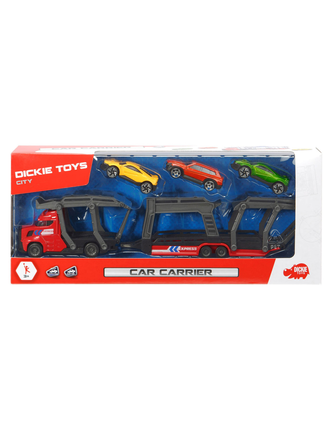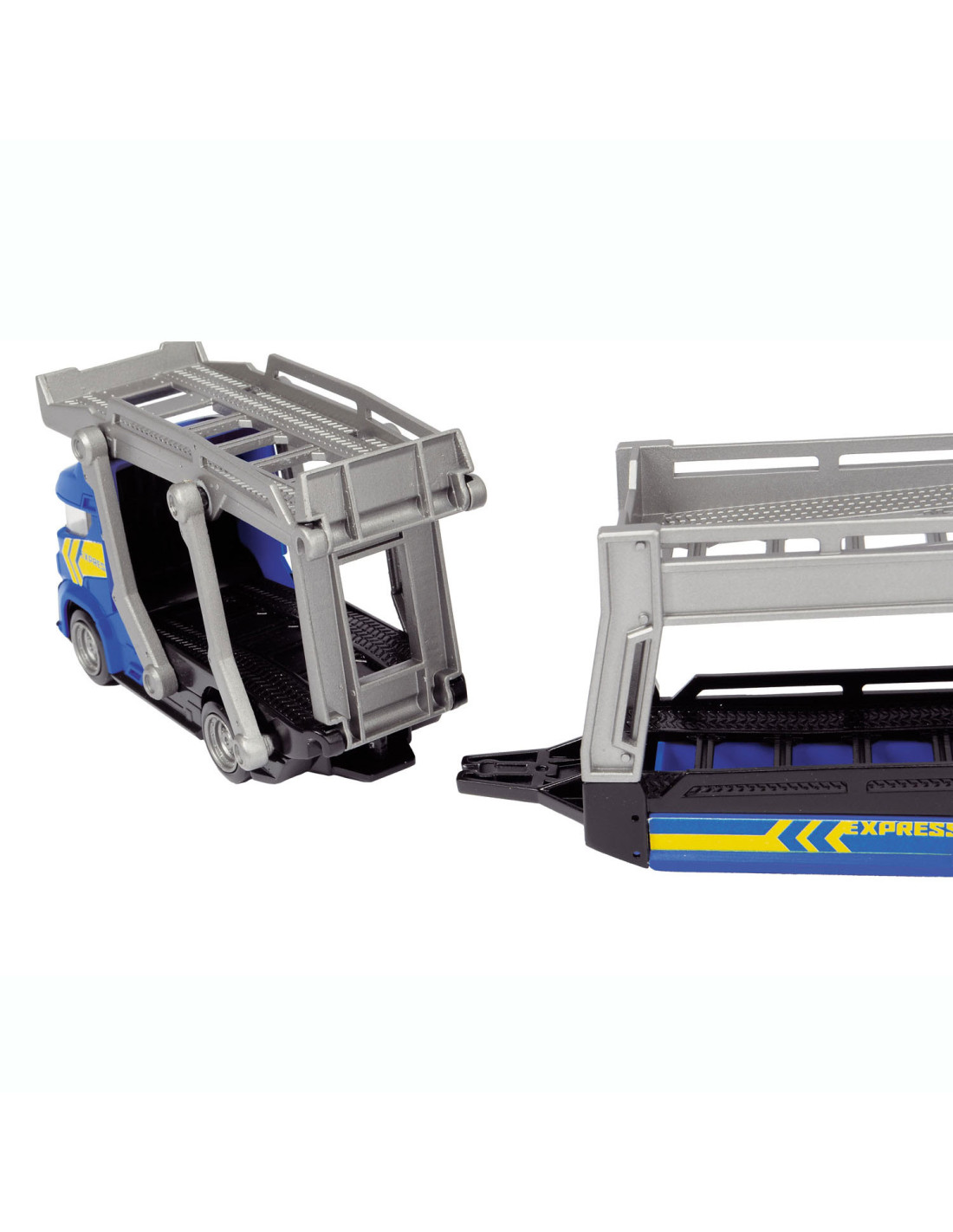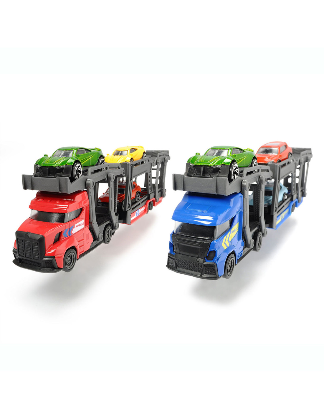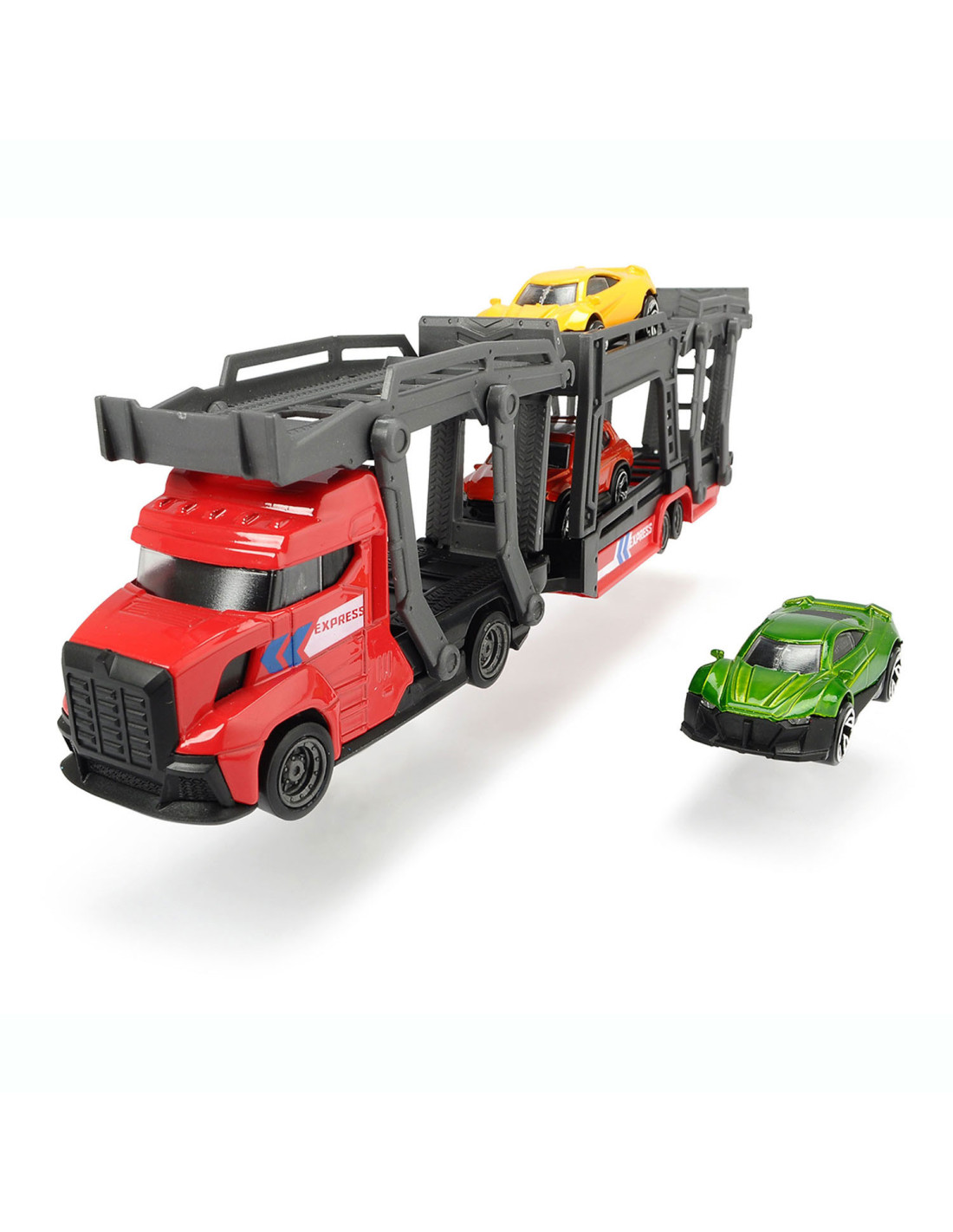 Breng de gloednieuwe auto’s naar de garage met deze stoere auto Dickie Auto Transporter. Koppel de trailer los, klap de laadbaan naar beneden en rijd de glanzende auto’s op de transporter. De speelset wordt geleverd inclusief 3 metalen auto's. Geschikt vanaf 3 jaar.