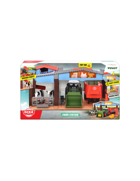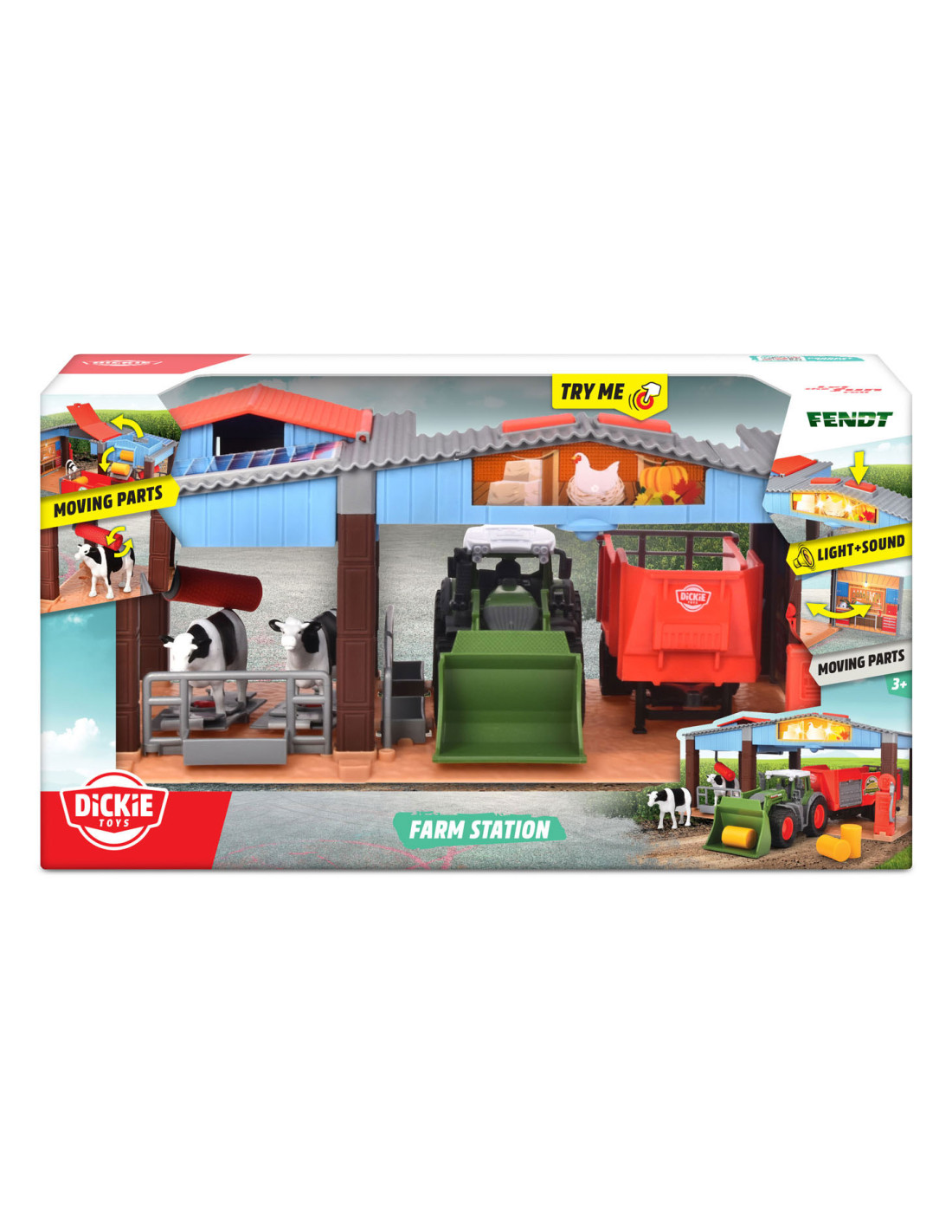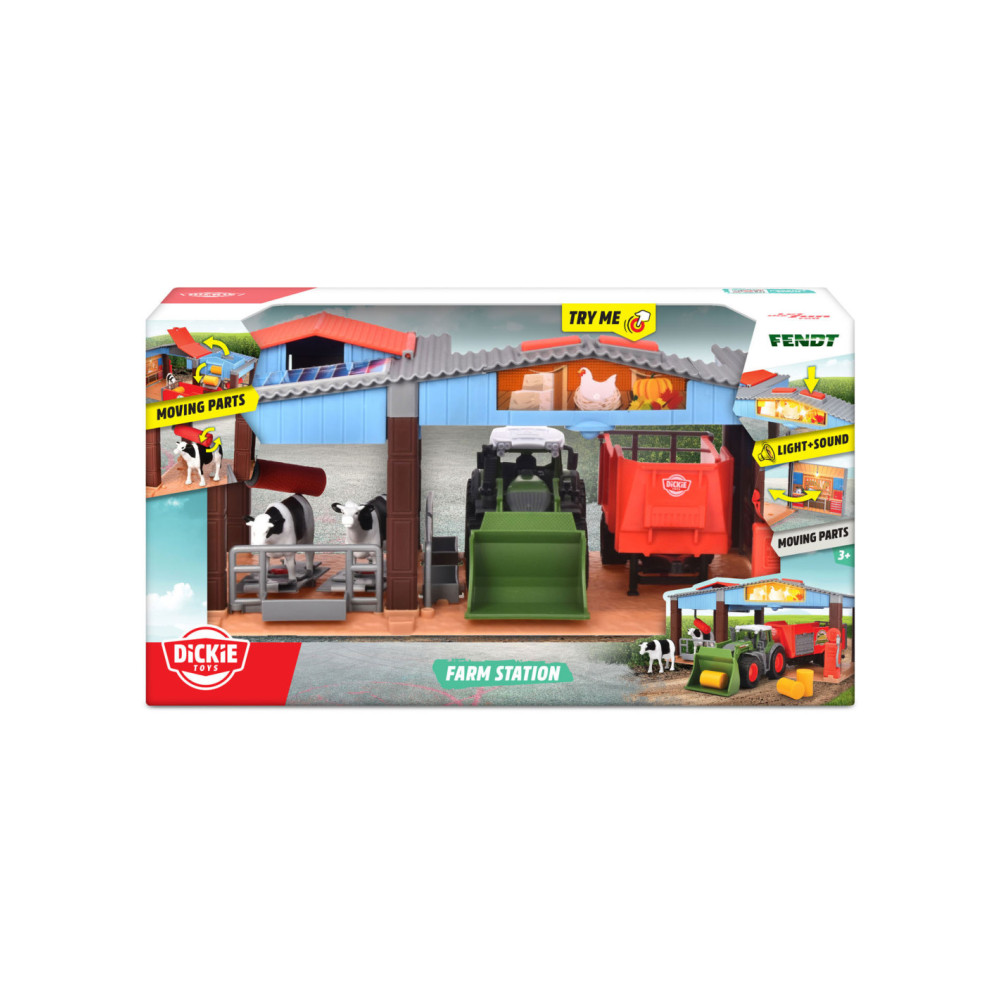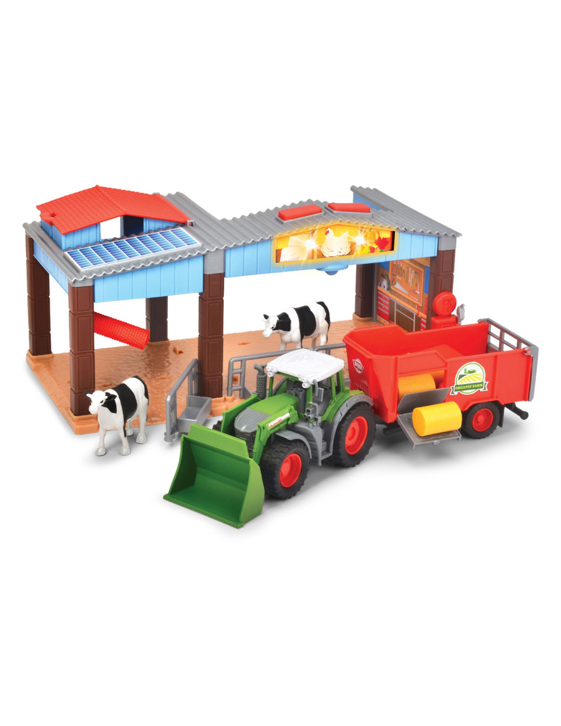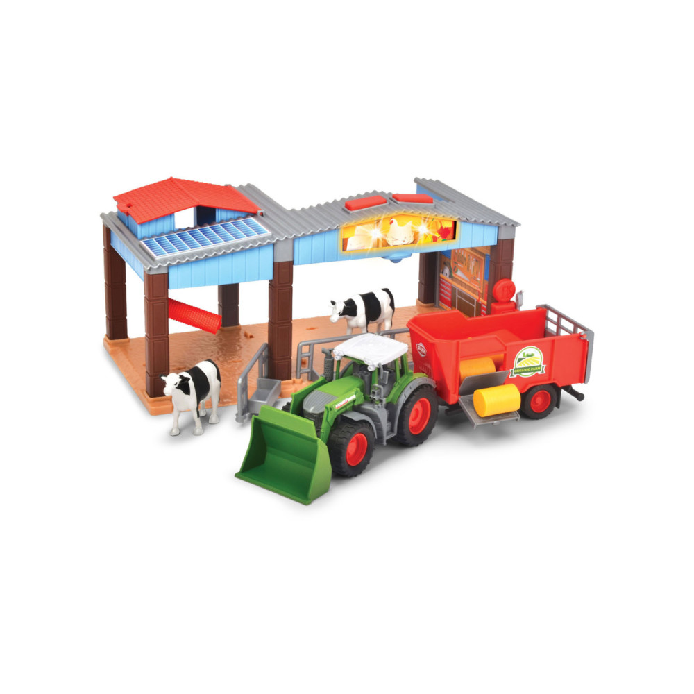 Met deze speelgoedset kunnen jonge boeren in de dop zich onderdompelen in de wereld van de landbouw. Dankzij het uitgebreide assortiment accessoires bevat de set alles wat je op een typische boerderij zou verwachten. De Fendt-tractor (met officiële Fendt-licentie) is voorzien van bewegende wielen en kan de hooibalen naar de koeien in de stal vervoeren. De voorste shovel kan op en neer worden bewogen om de hooibalen op te pakken en in de trailer te plaatsen. Andere functies, zoals het koeienwasstation, dragen bij aan het plezier en zorgen voor een realistische landbouwervaring.