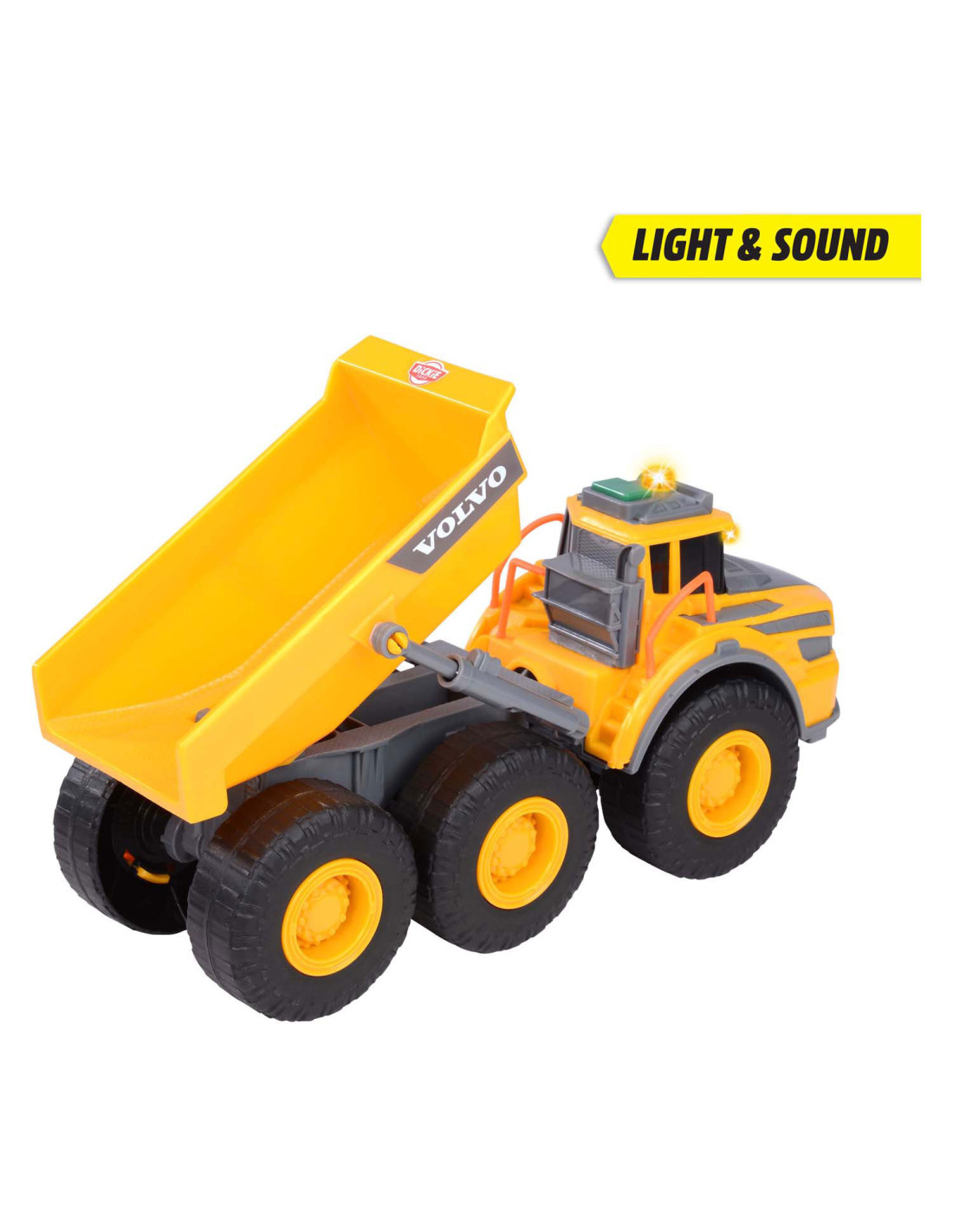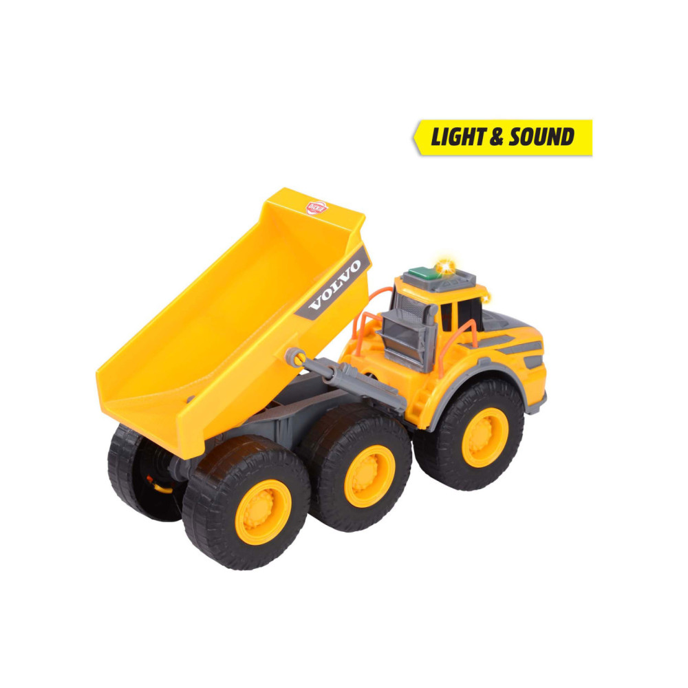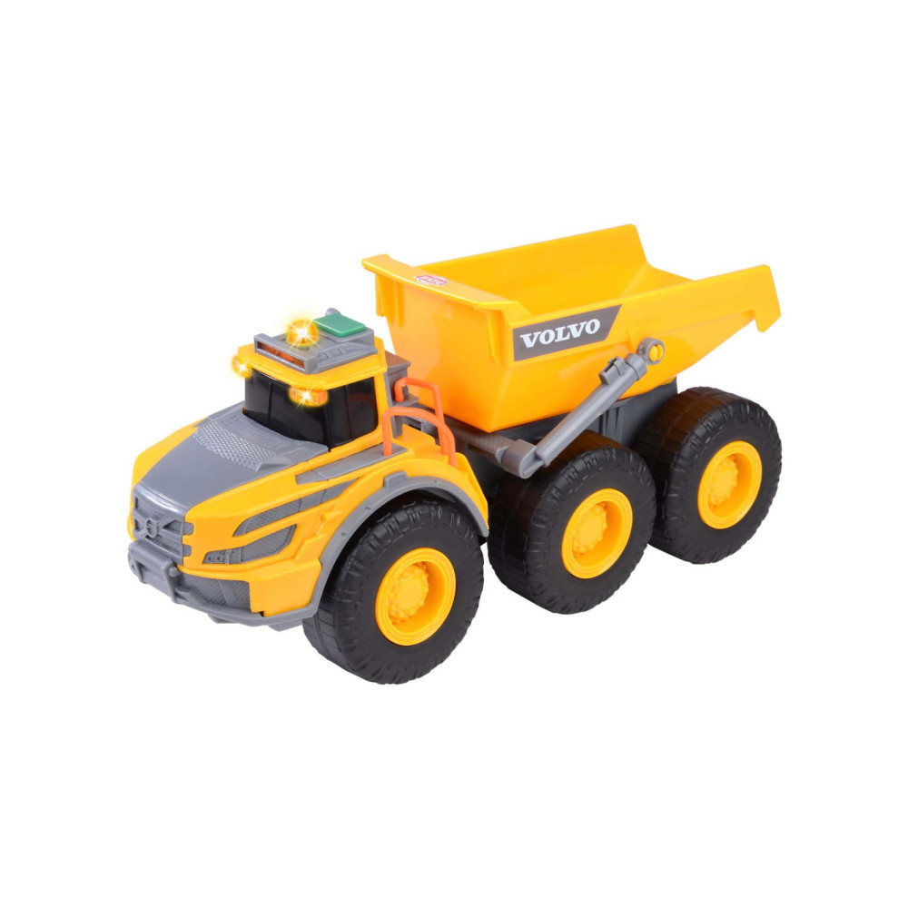 Volvo kiepwagen van Dickie Toys met licht, geluid en beweegbare laadbak. Stevig bouwvoertuig, geschikt voor kinderen vanaf 3 jaar.