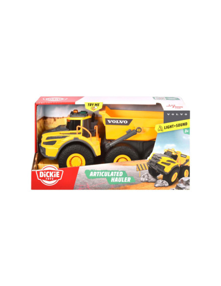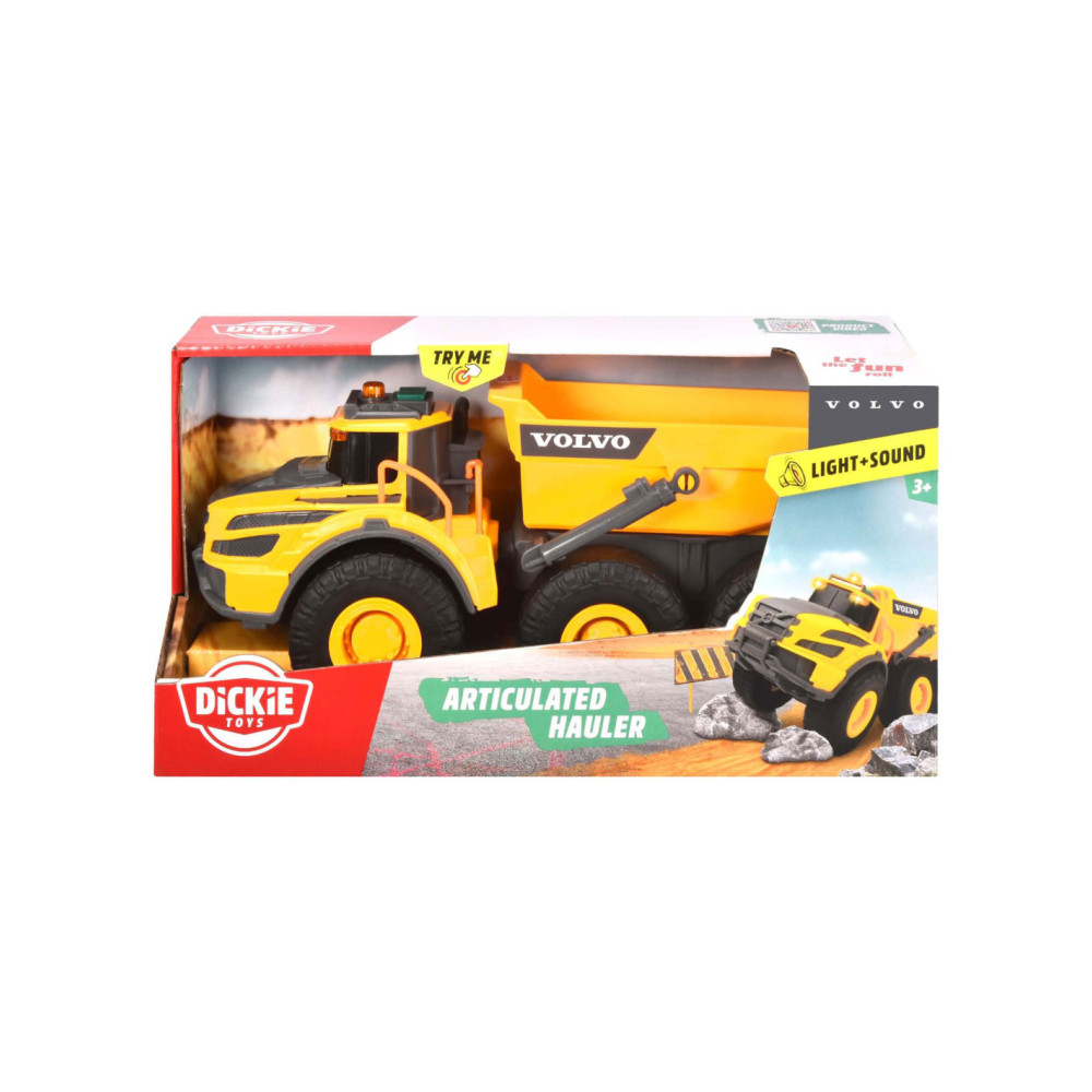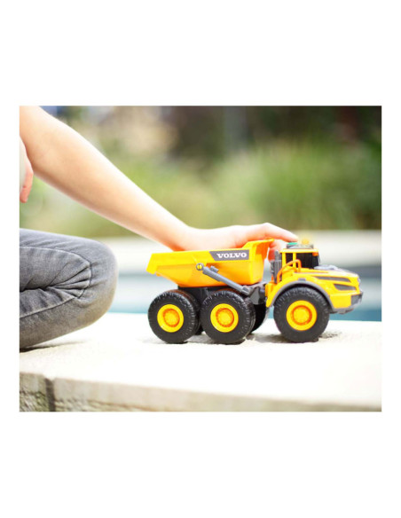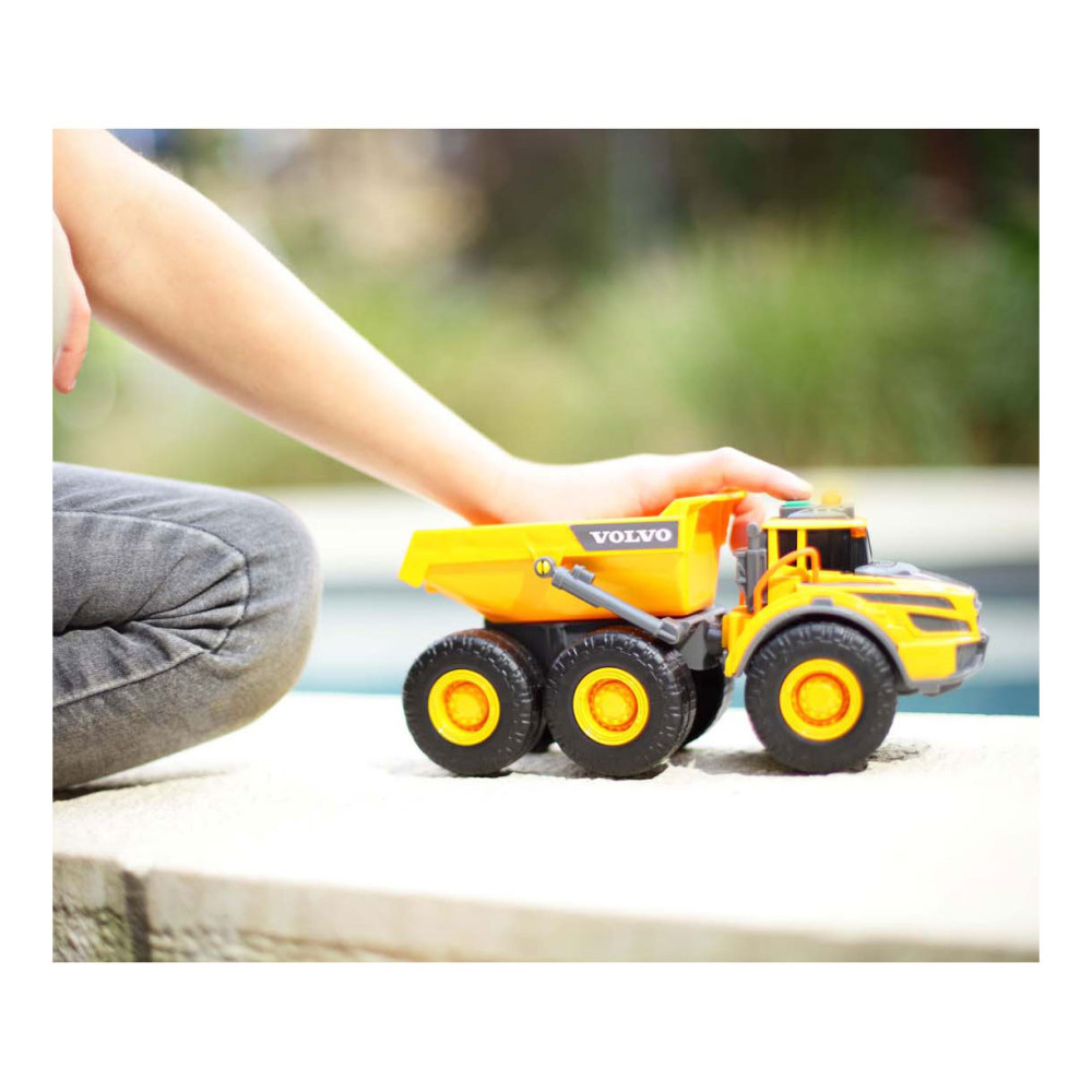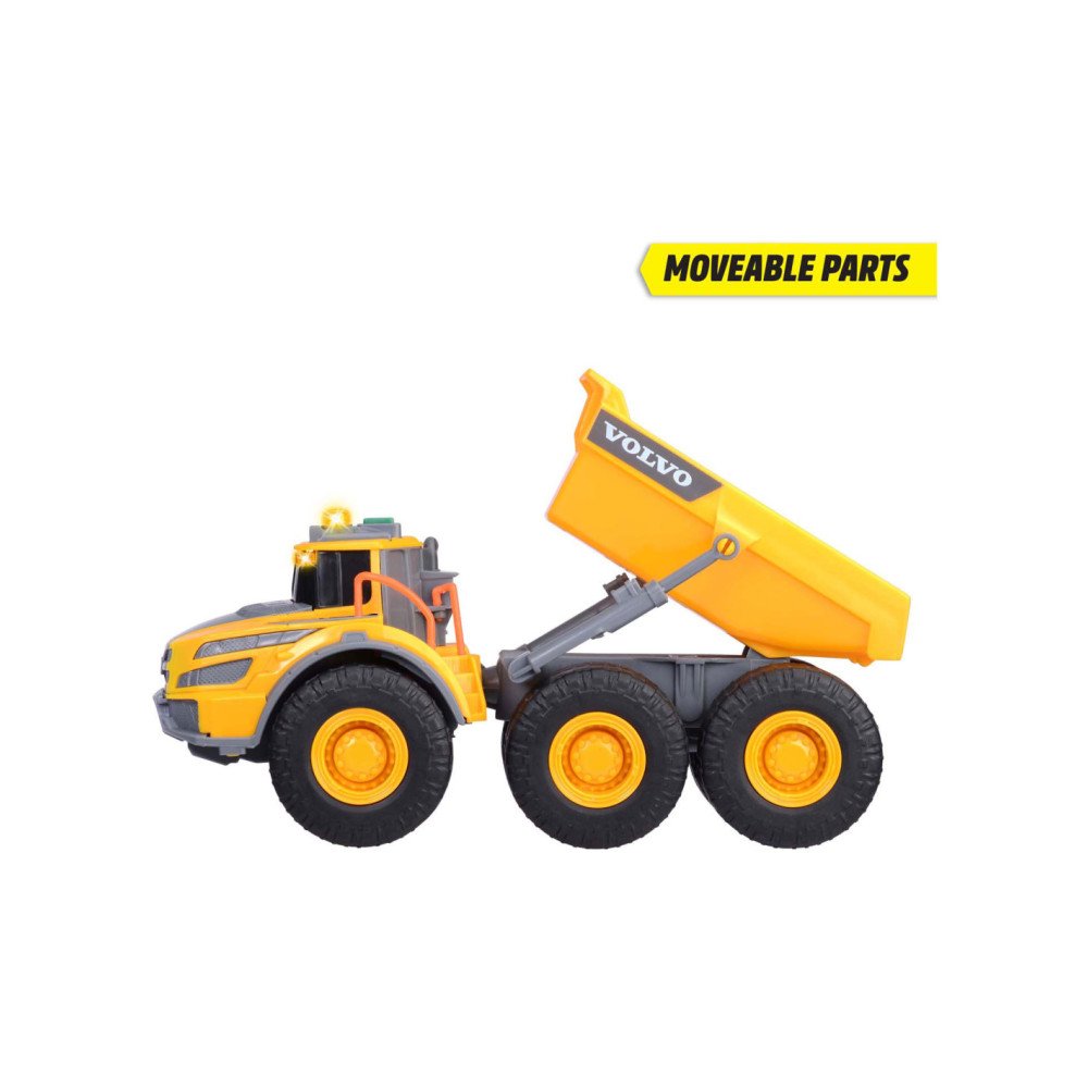 Volvo kiepwagen van Dickie Toys met licht, geluid en beweegbare laadbak. Stevig bouwvoertuig, geschikt voor kinderen vanaf 3 jaar.