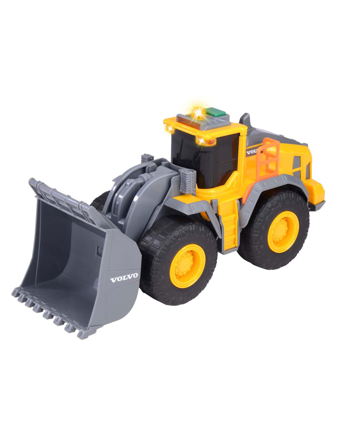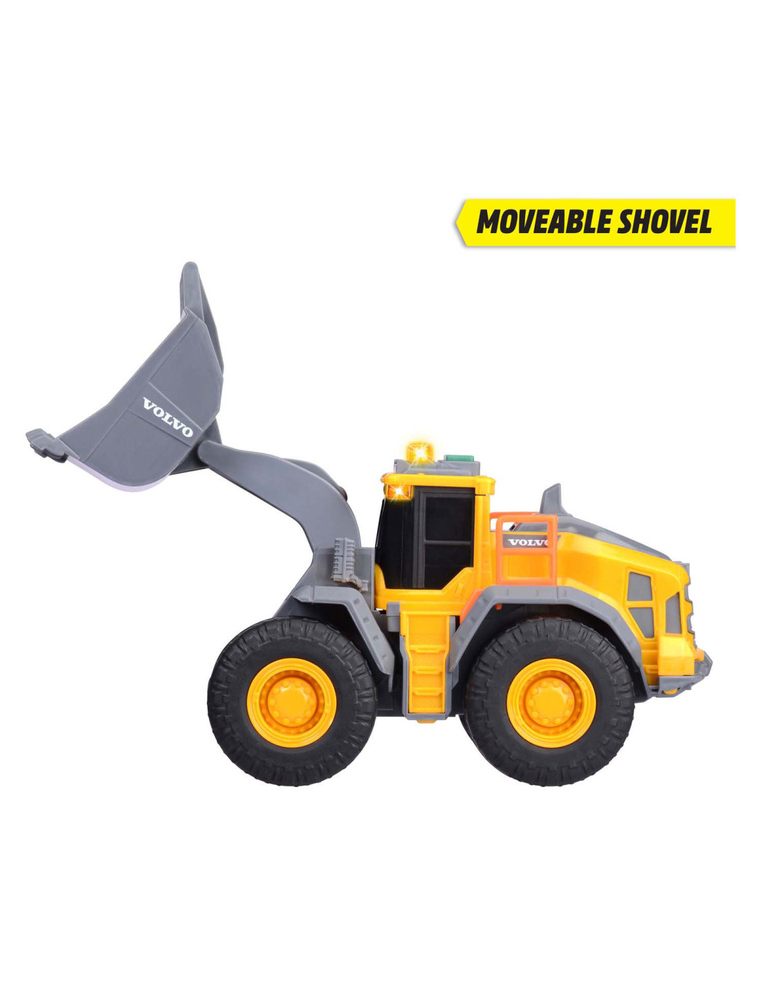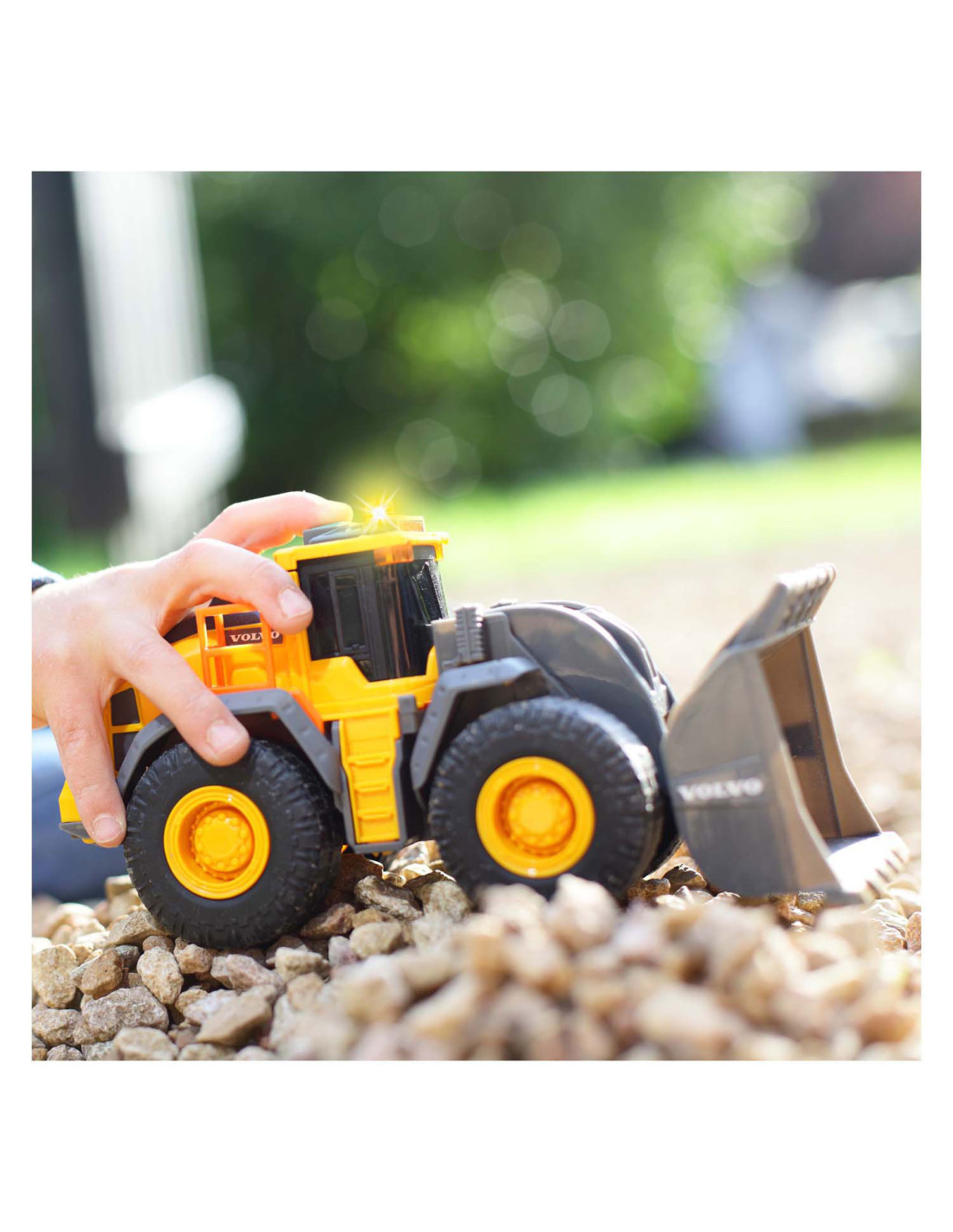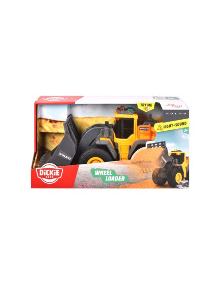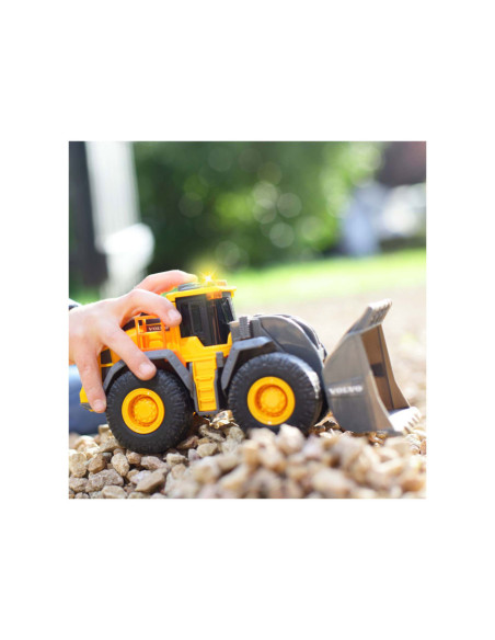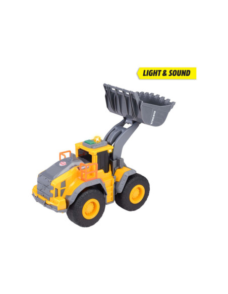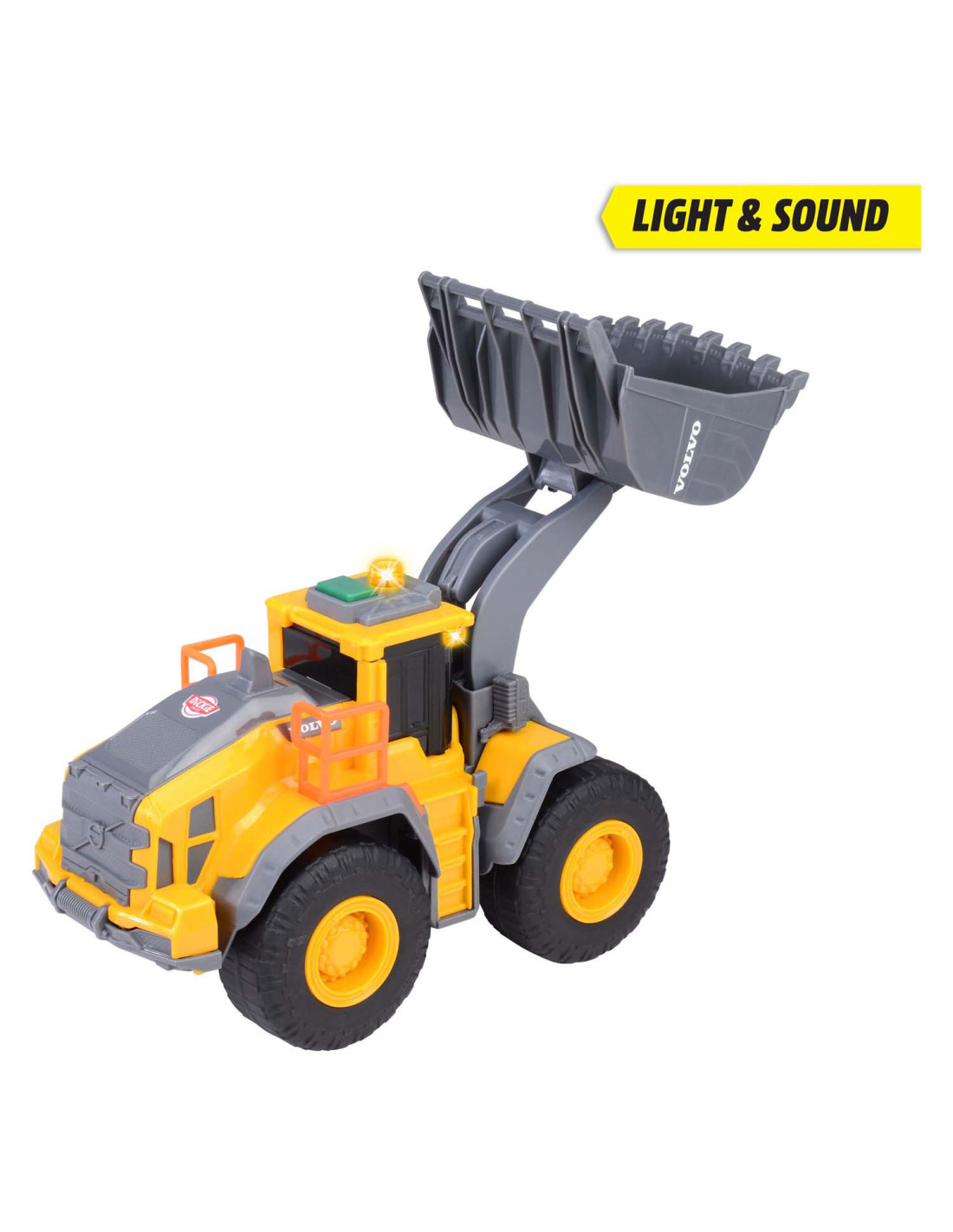 Volvo wiellader van Dickie Toys met licht, geluid en beweegbare laadschop. Stevig ontwerp, geschikt voor kinderen vanaf 3 jaar.