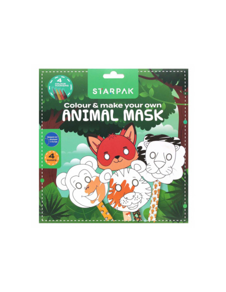 Set met 4 dieren maskers die je zelf kan versieren. Geschikt voor kinderen vanaf 3 jaar. De set bestaat uit: