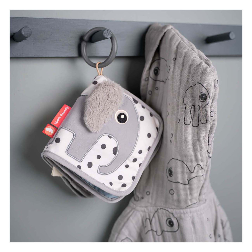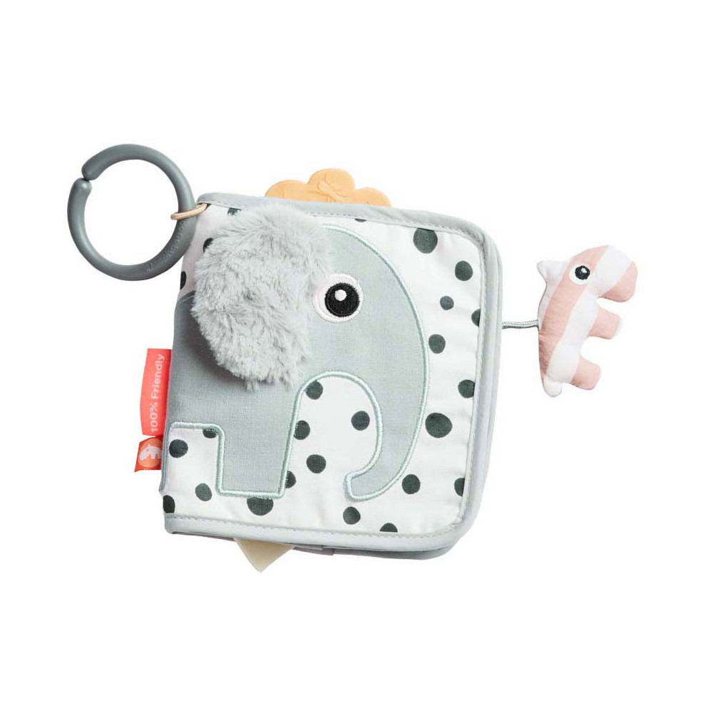 Leuk en schattig Elphee activiteitenboek vol met coole functies. Binnenin het boek zal een klein spiegeltje met gouden details teruglachen naar je kleintje, een klein bijtringetje dat aan het zakje is bevestigd zal leuk zijn om aan te raken en bijten, en kleine vingers zullen Ozzo kreukelgeluiden laten maken.