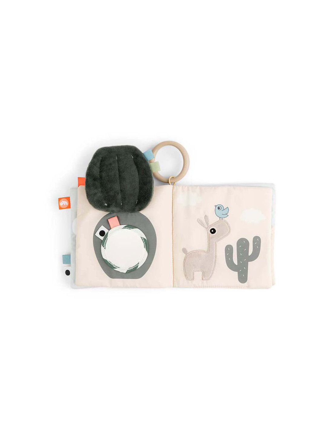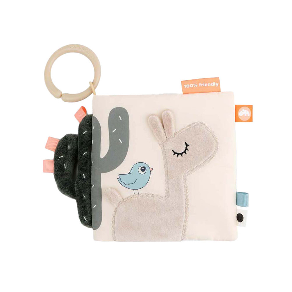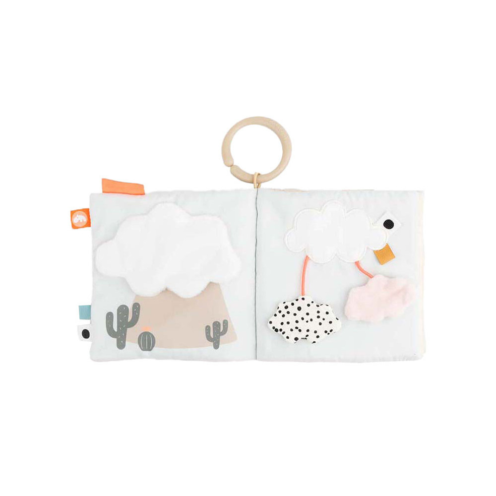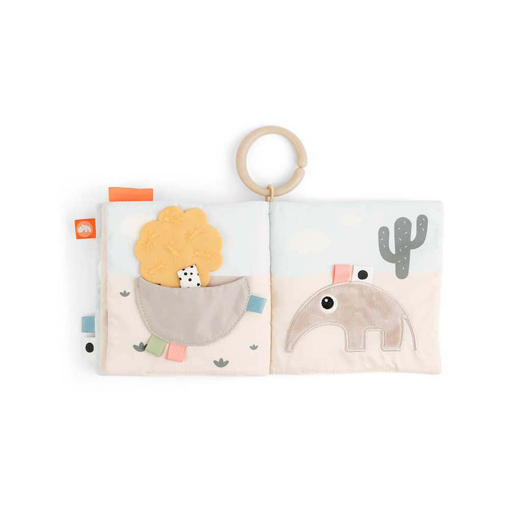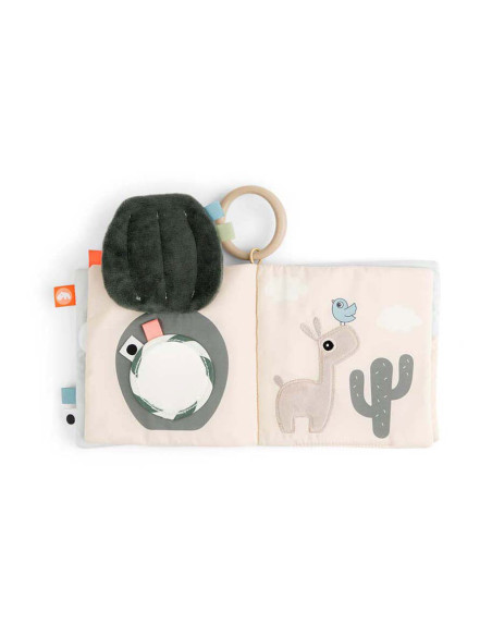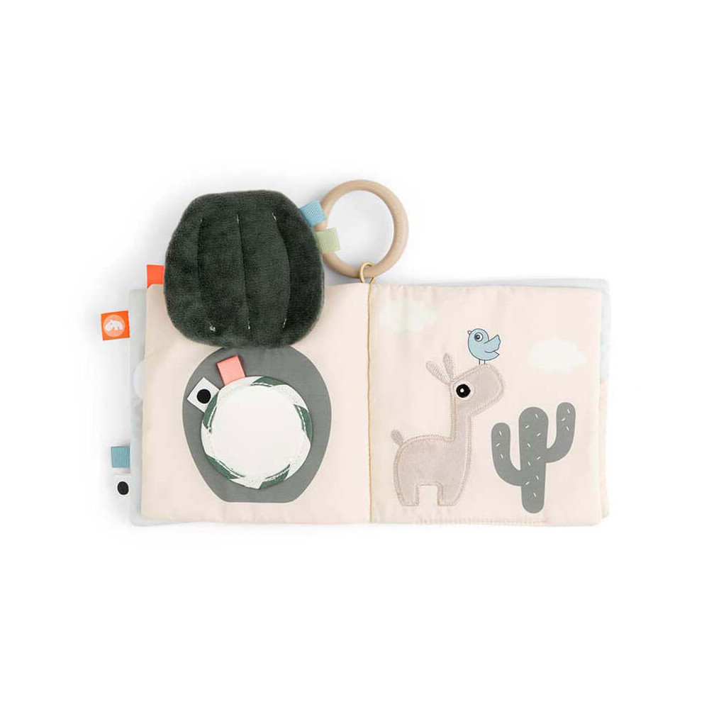 Kalme, zanderige kleuren worden gecombineerd met stoffig cactusgroen en een vleugje fris koraalrood. Gebruik de speelgoedlink om het babyboek te bevestigen aan een speelmat voor op de buik of aan een kinderwagen, kinderwagen of autostoel voor entertainment.