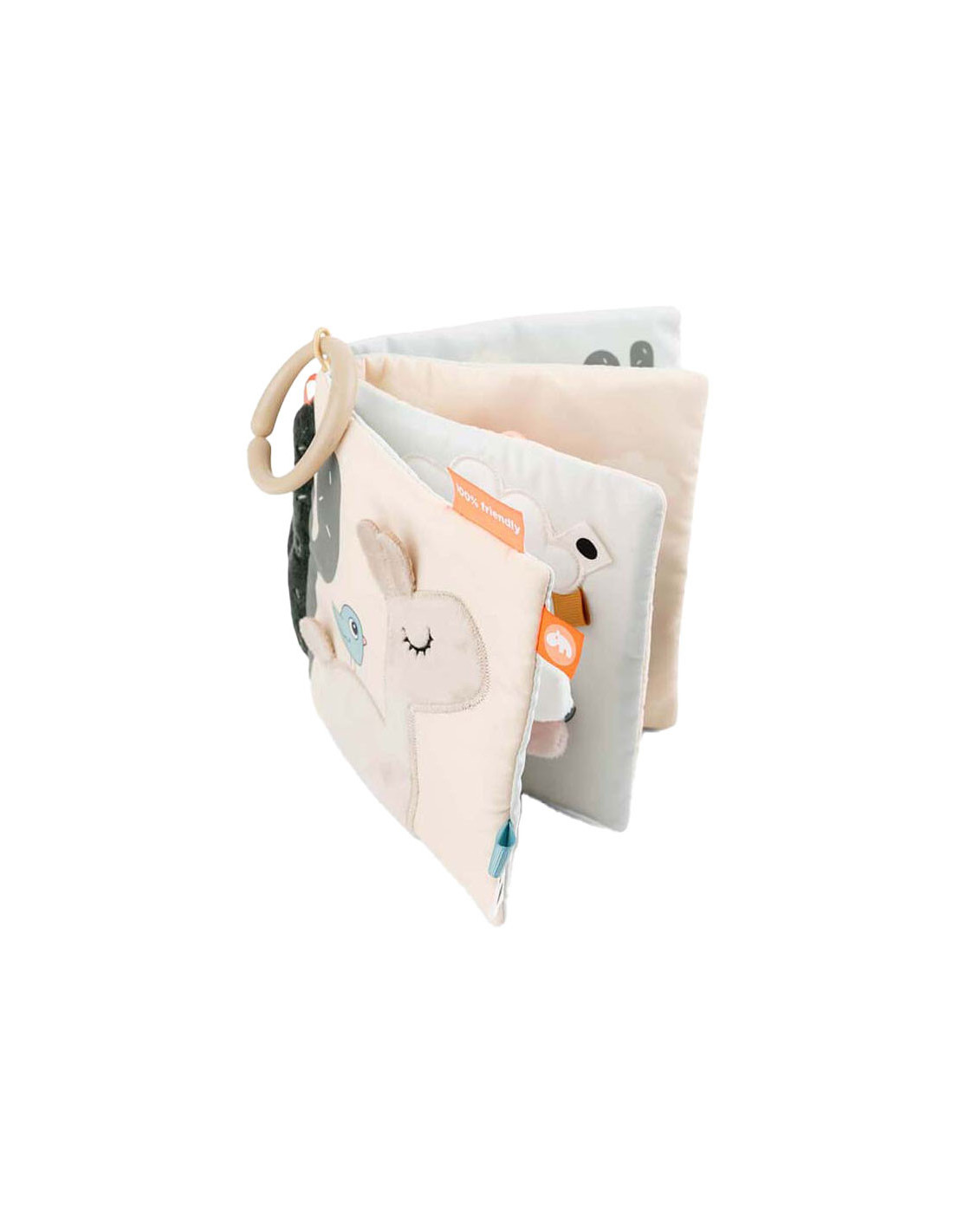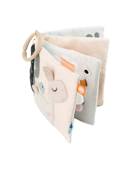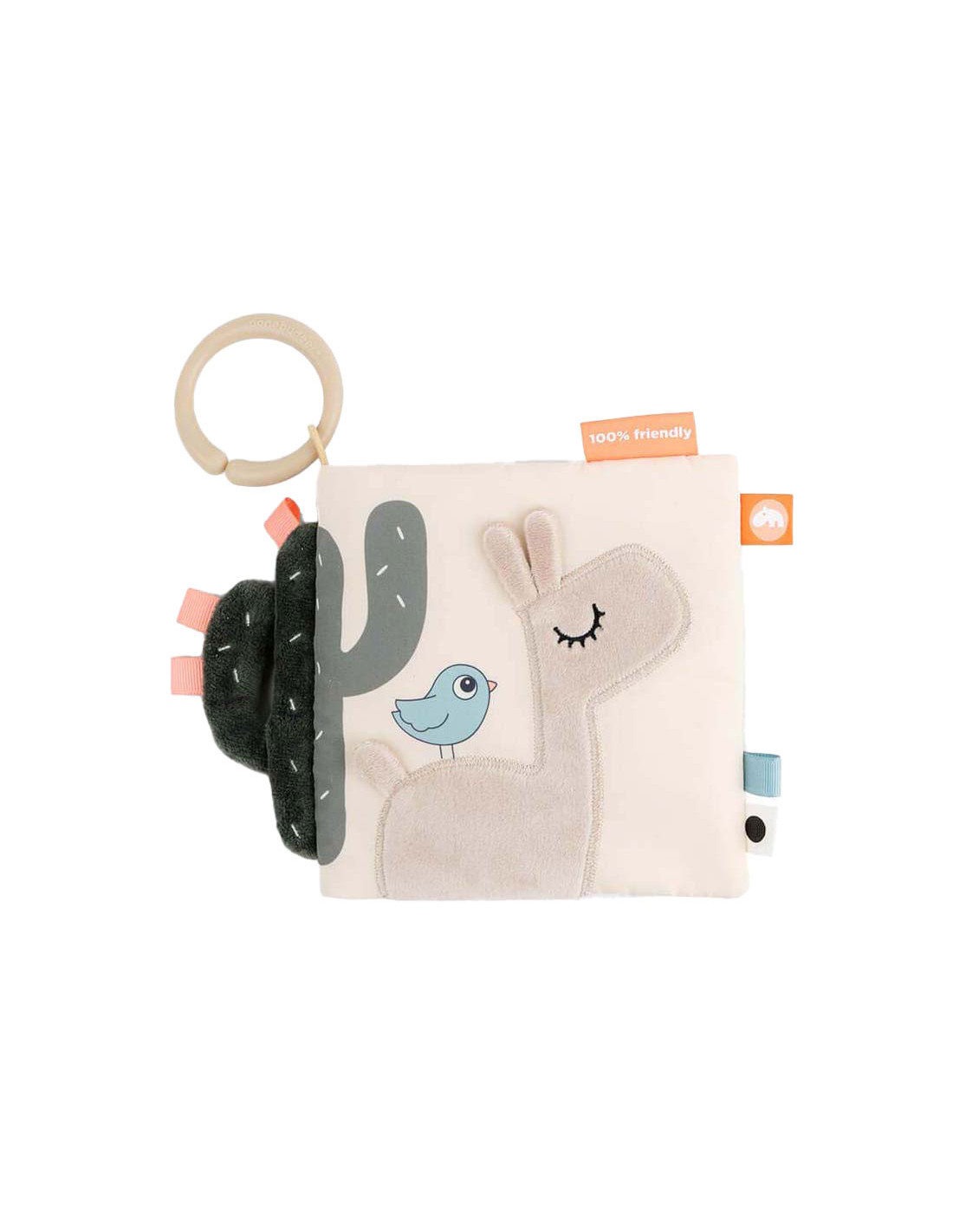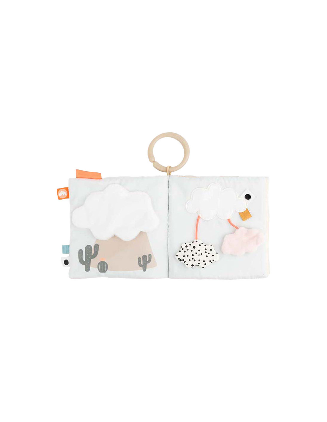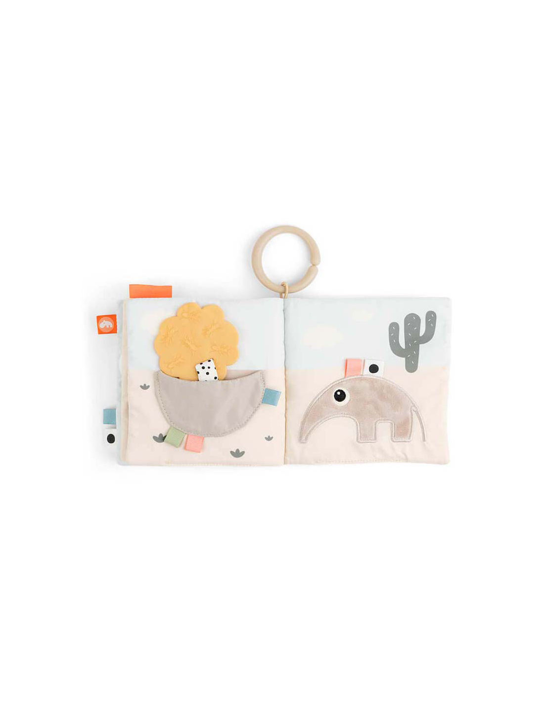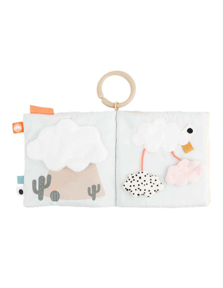 Kalme, zanderige kleuren worden gecombineerd met stoffig cactusgroen en een vleugje fris koraalrood. Gebruik de speelgoedlink om het babyboek te bevestigen aan een speelmat voor op de buik of aan een kinderwagen, kinderwagen of autostoel voor entertainment.