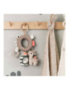 Het speeltje is gemakkelijk vast te pakken en vast te houden voor kleine vingertjes en dankzij de elastische lus kun je een speen of ander speeltje binnen handbereik houden.
