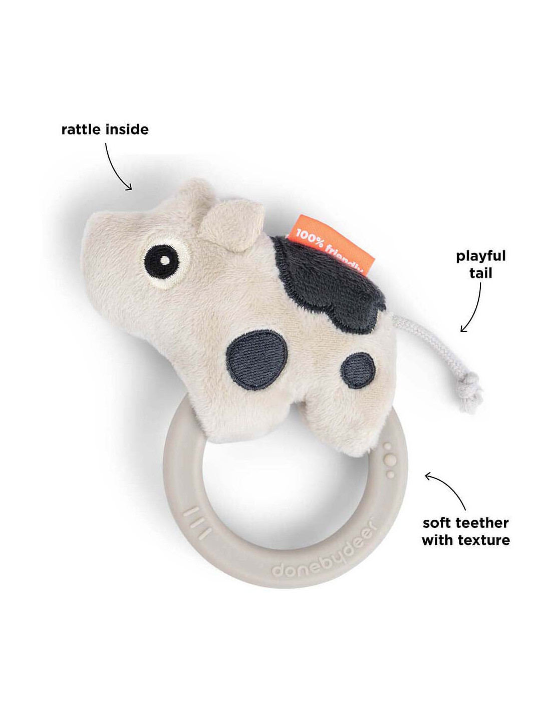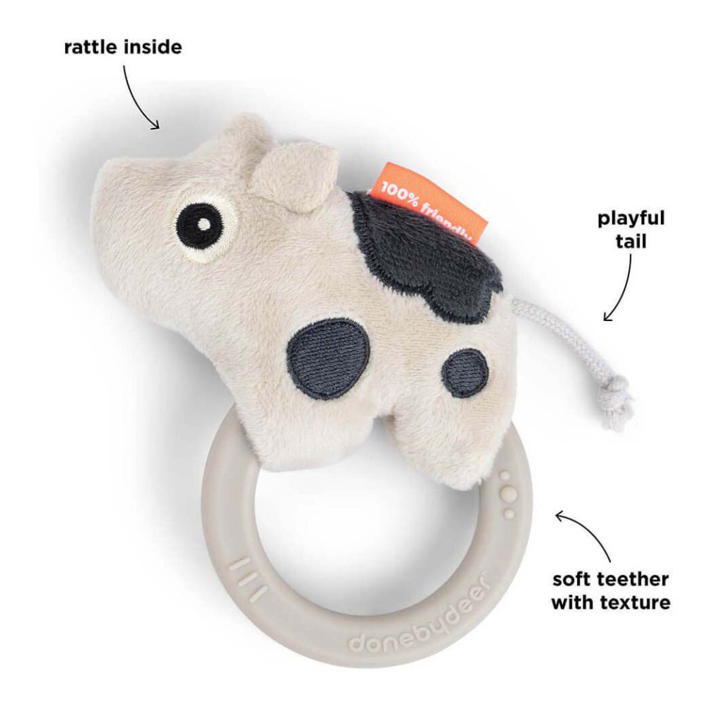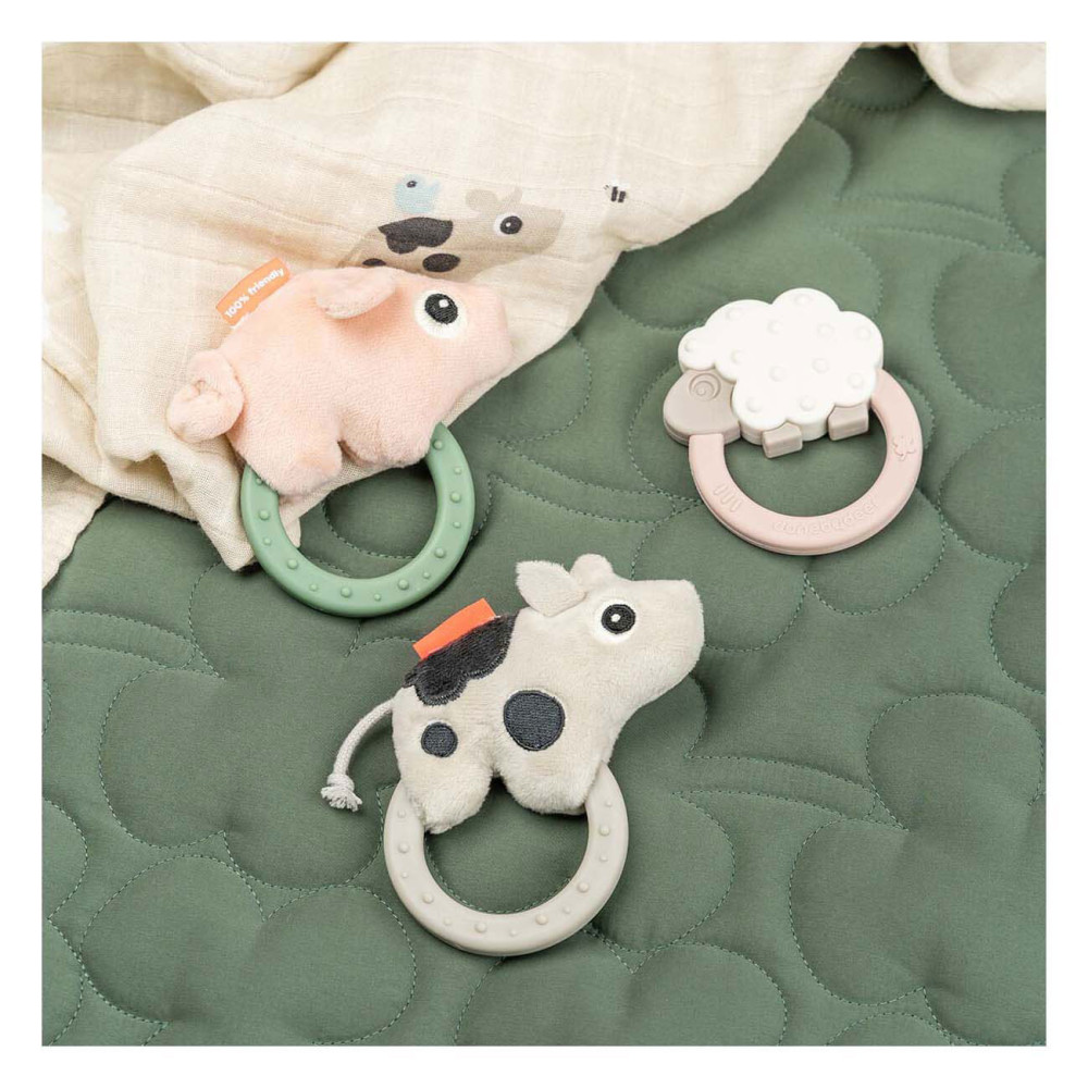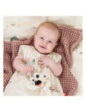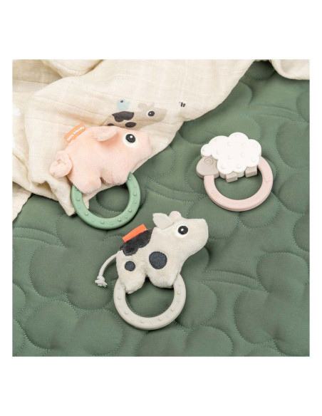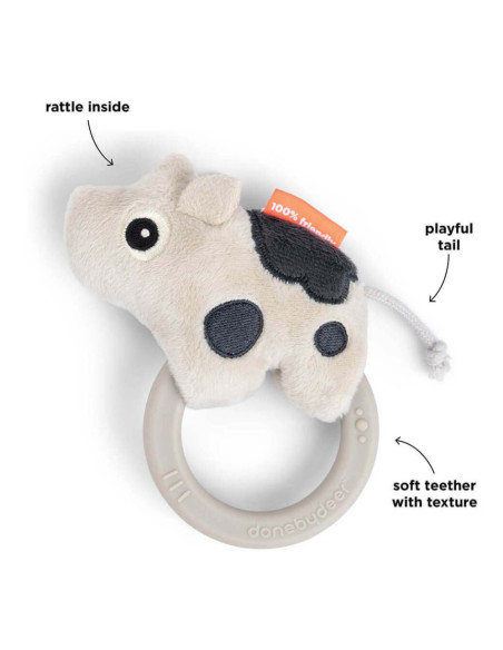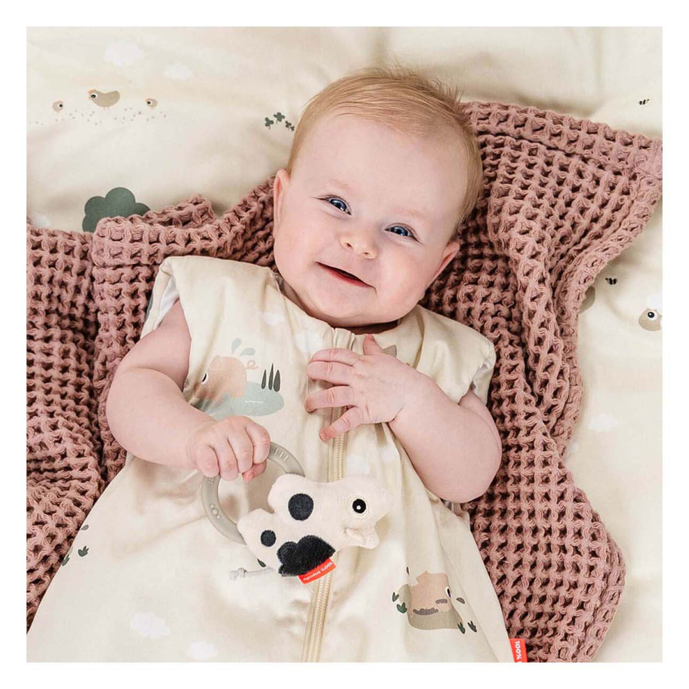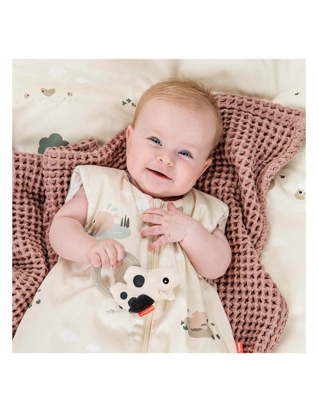 Deze leuke sensorische rammelaar is ontworpen om de zintuigen van je baby te kalmeren en te stimuleren. Dotti, in een zachte zandkleur met contrasterende details, biedt zachte visuele stimulatie, waardoor deze bijtring een geweldige metgezel is voor de ontwikkeling van je baby. Of het nu gaat om het kalmeren van pijnlijk tandvlees of het bezig houden van kleine handjes, deze sensorische rammelaar is een must-have voor elke groeifase van je baby.