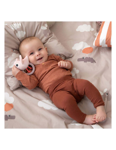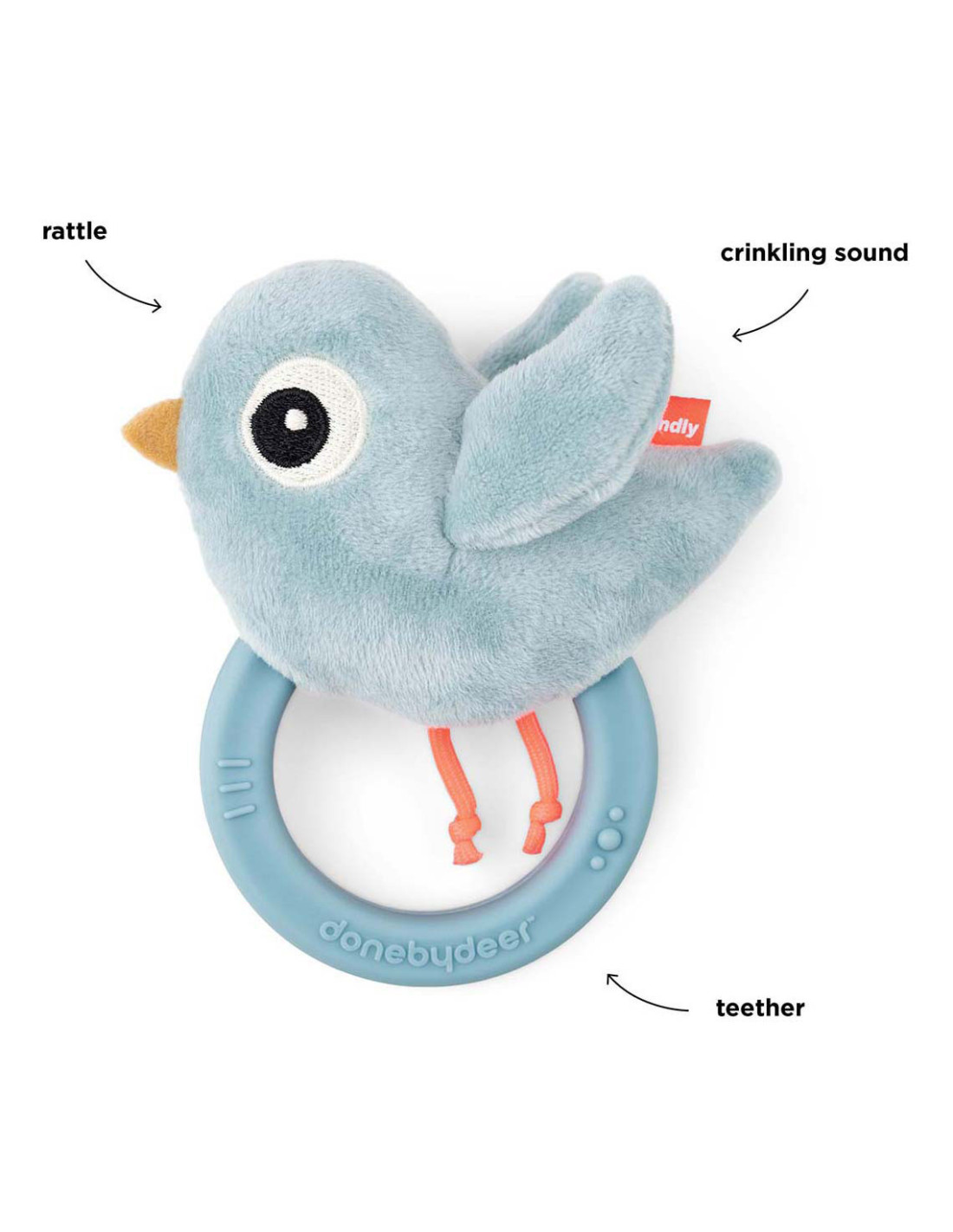 Een schattige, blauwe Birdee sensorische rammelaar met bijtring is een goede metgezel voor je kleintje met pijnlijk tandvlees. De sensorische rammelaar heeft een schattig rammelgeluid, verschillende texturen om te ontdekken en de vleugels maken een leuk knisperend geluid bij aanraking!