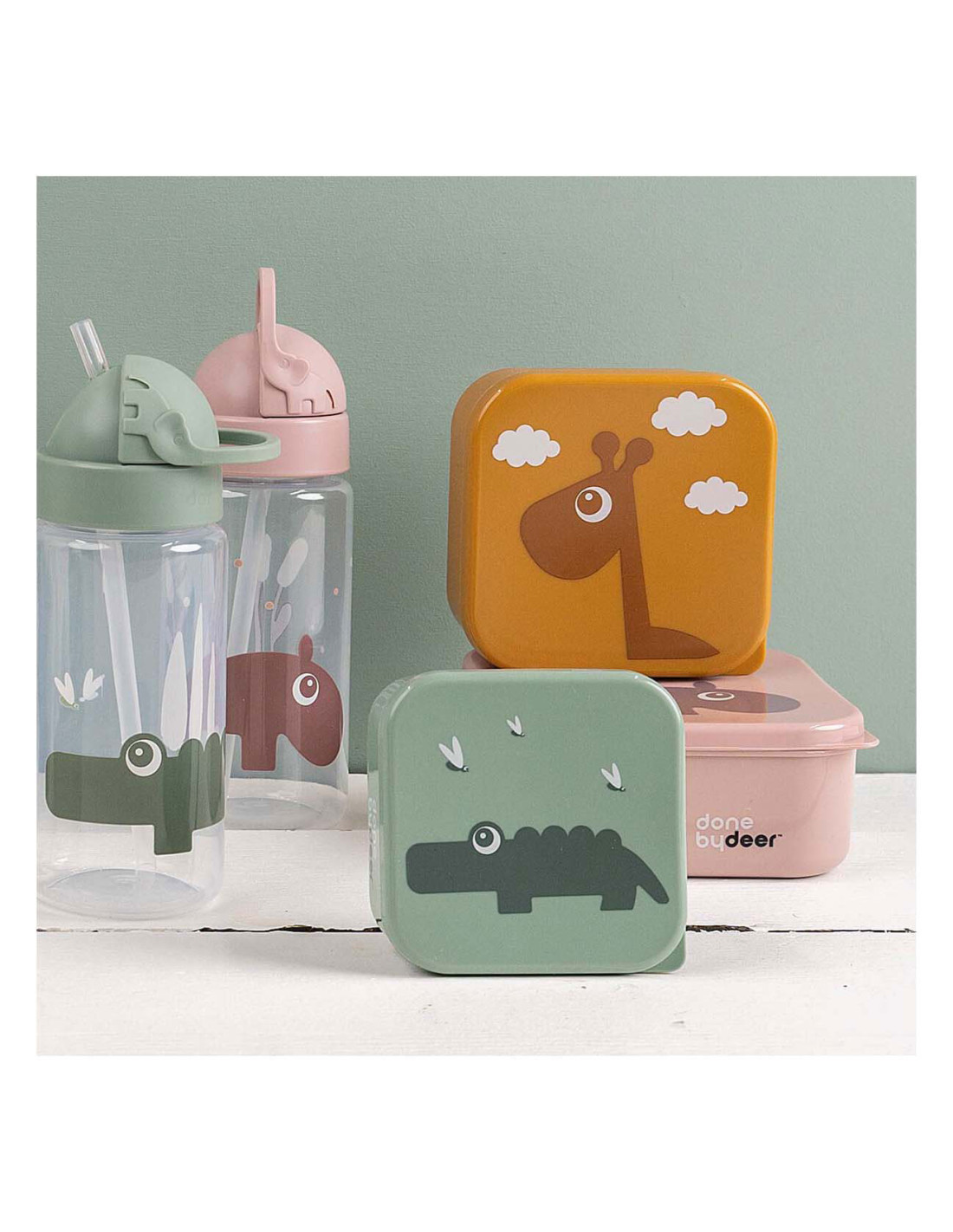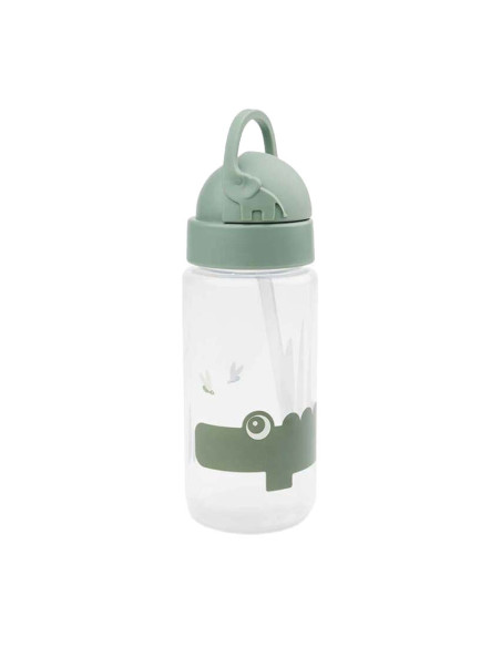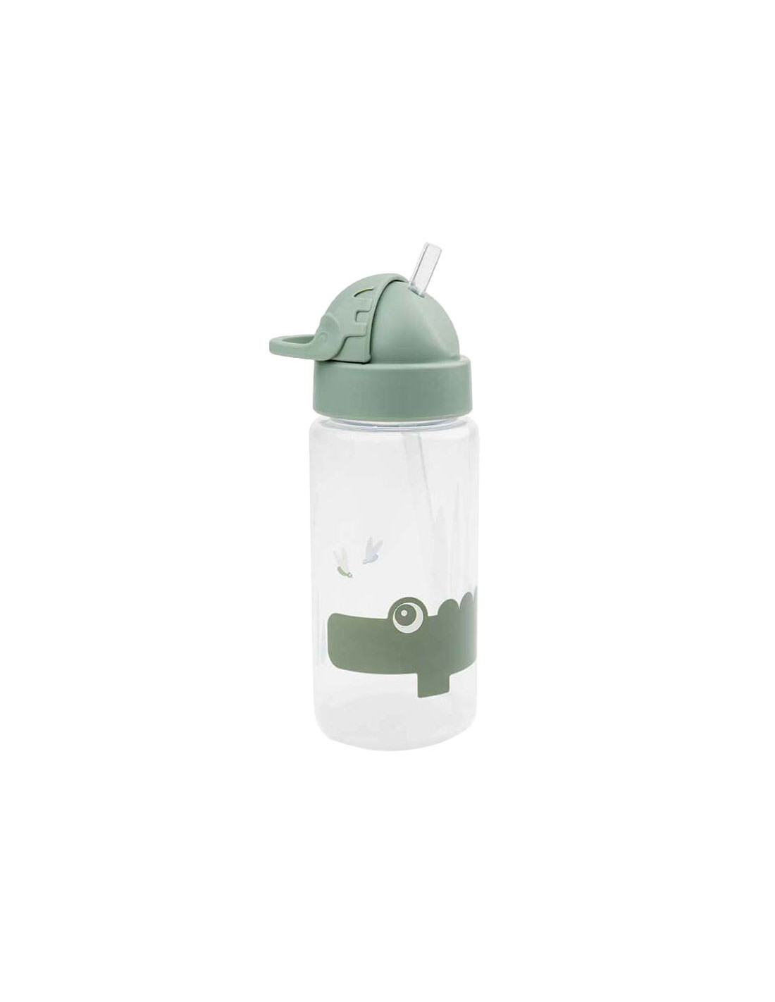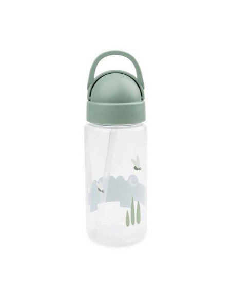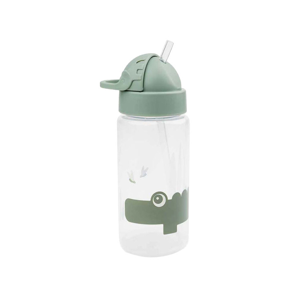 De morsvrije drinkfles is onmisbaar voor onderweg en maakt het nog leuker voor je kind om de hele dag gehydrateerd te blijven. Onze krokodil, Croco en kleine vliegjes bedekken de groene waterfles.