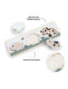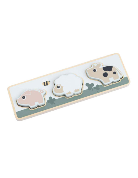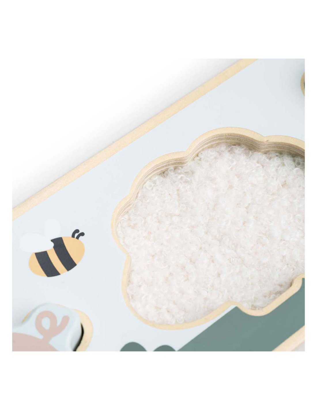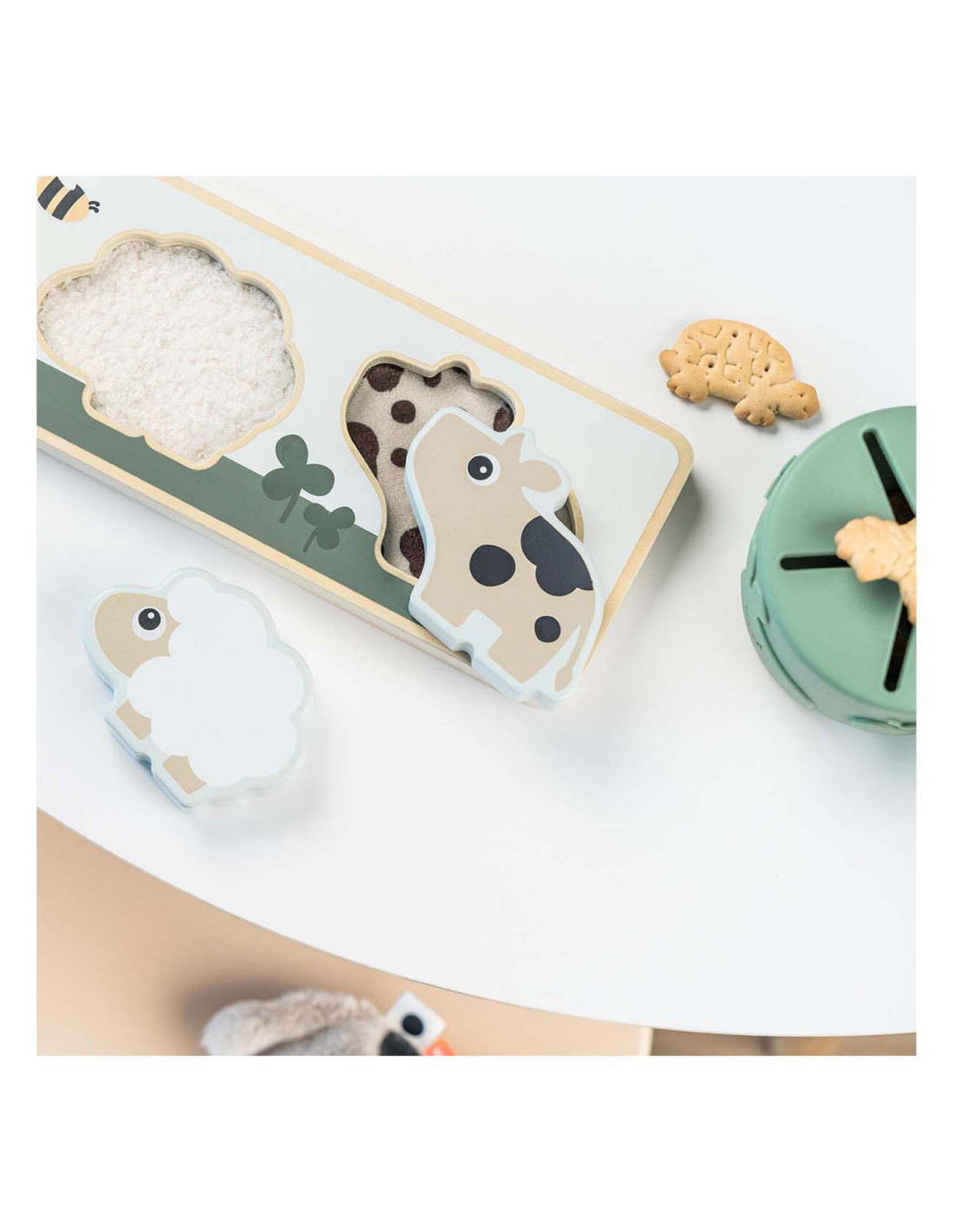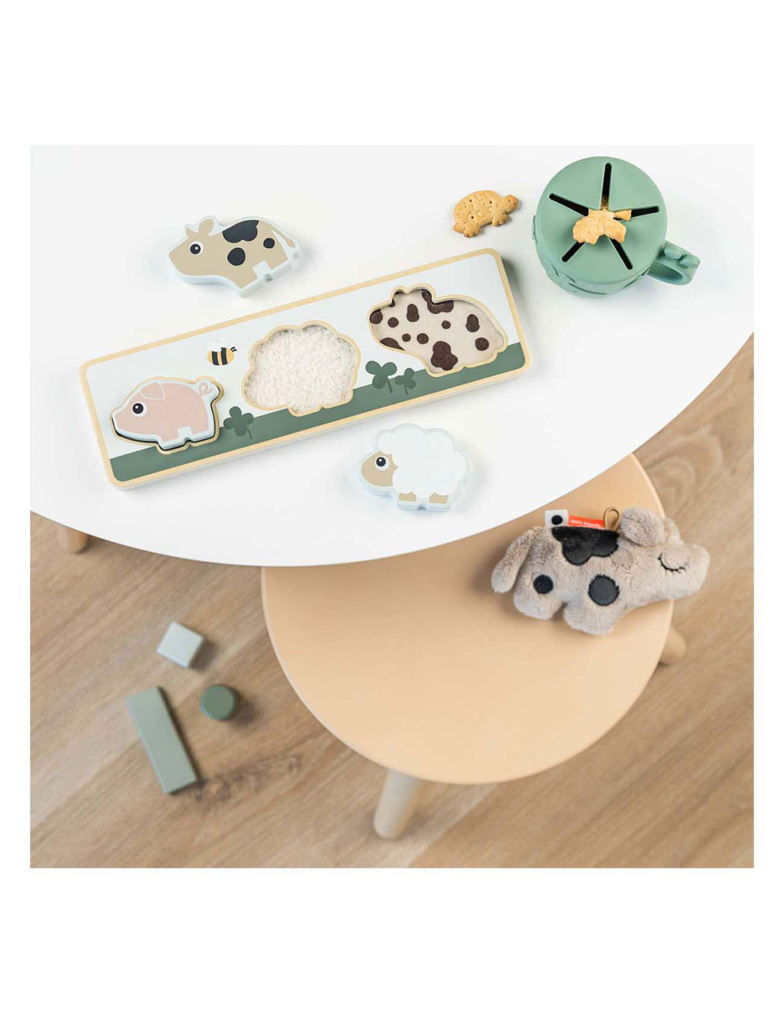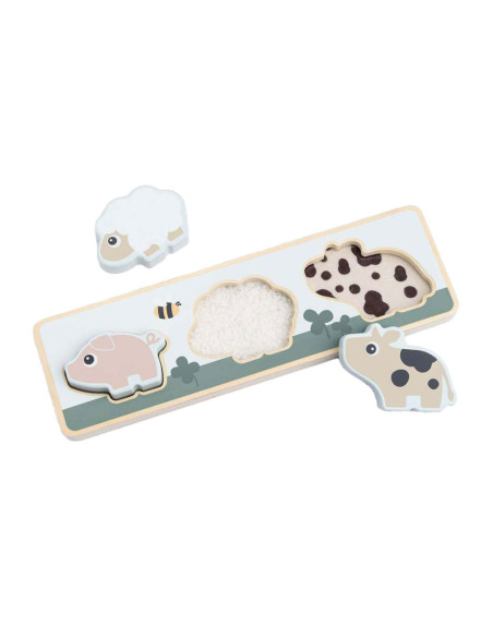 Deze eenvoudige sensorische puzzel zit vol spannende texturen en patronen die je kleintje kan ontdekken. Het helpt bij het trainen van de logica en de fijne motoriek als ze de stukjes op elkaar leggen, terwijl het fantasierijk spelen aanmoedigt met verhaaltjes en dierengeluiden.