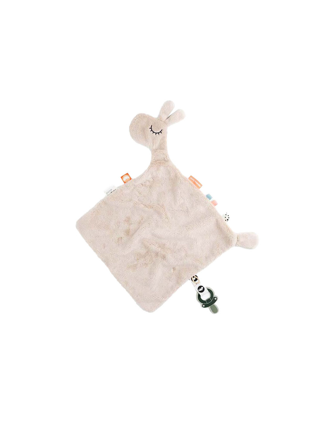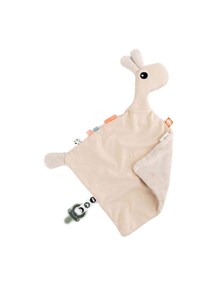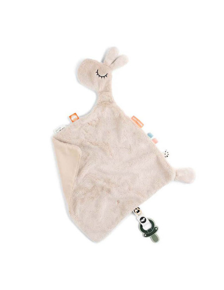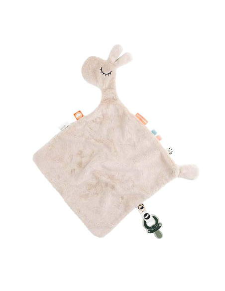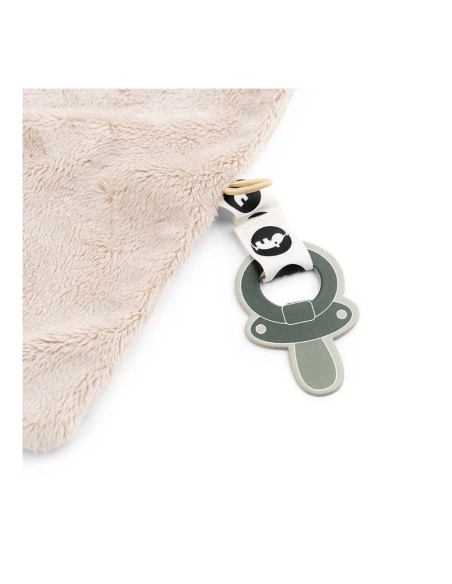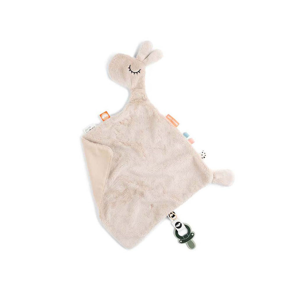 De baby comfortdeken zit vol met leuke labels en spannende texturen die klaar zijn om ontdekt te worden. De praktische klittenbandsluiting houdt fopspenen bij de hand.