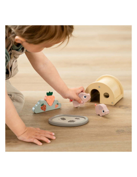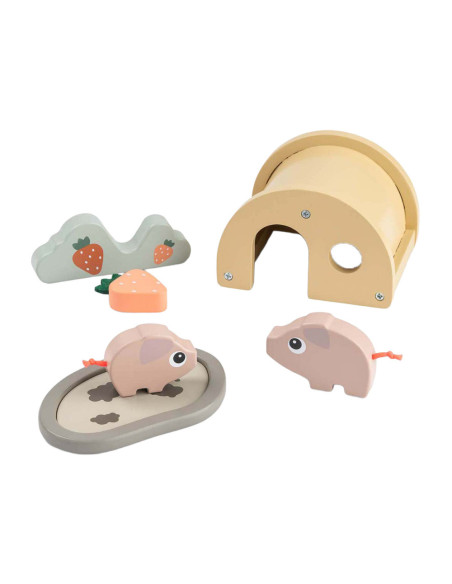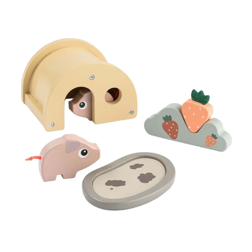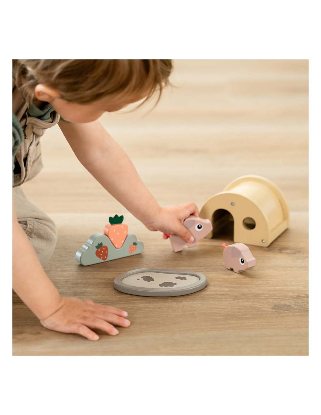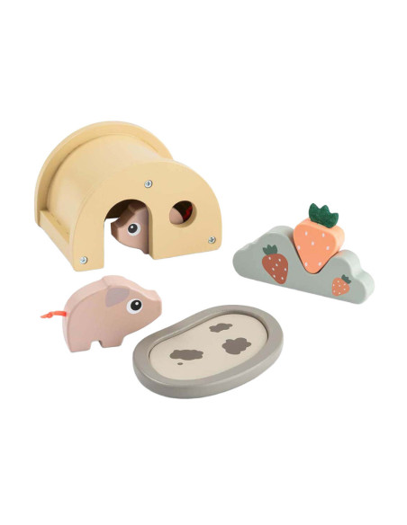Houten Done by Deer speelset met varkentje Pigee, stal, wortel, groentebed en modderpoel. Gemaakt van stevig hout. Geschikt vanaf 2 jaar.