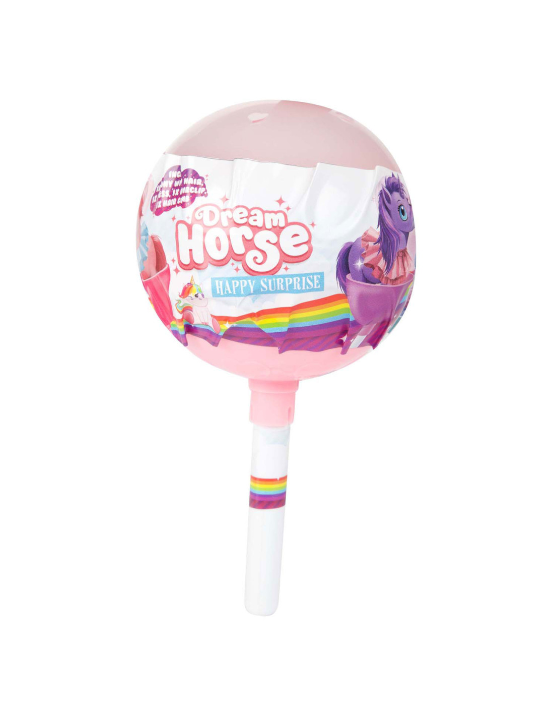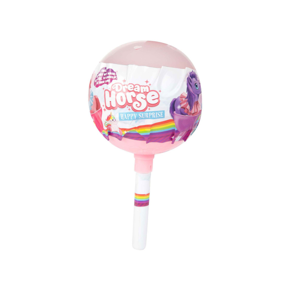 De Dream Horse Verrassingslolly Eenhoorn is een kunststof verrassing van 10 cm met daarin een schattig figuurtje en accessoires. Geschikt voor kinderen vanaf 3 jaar. Leuk om te verzamelen, mee te spelen of cadeau te geven.
