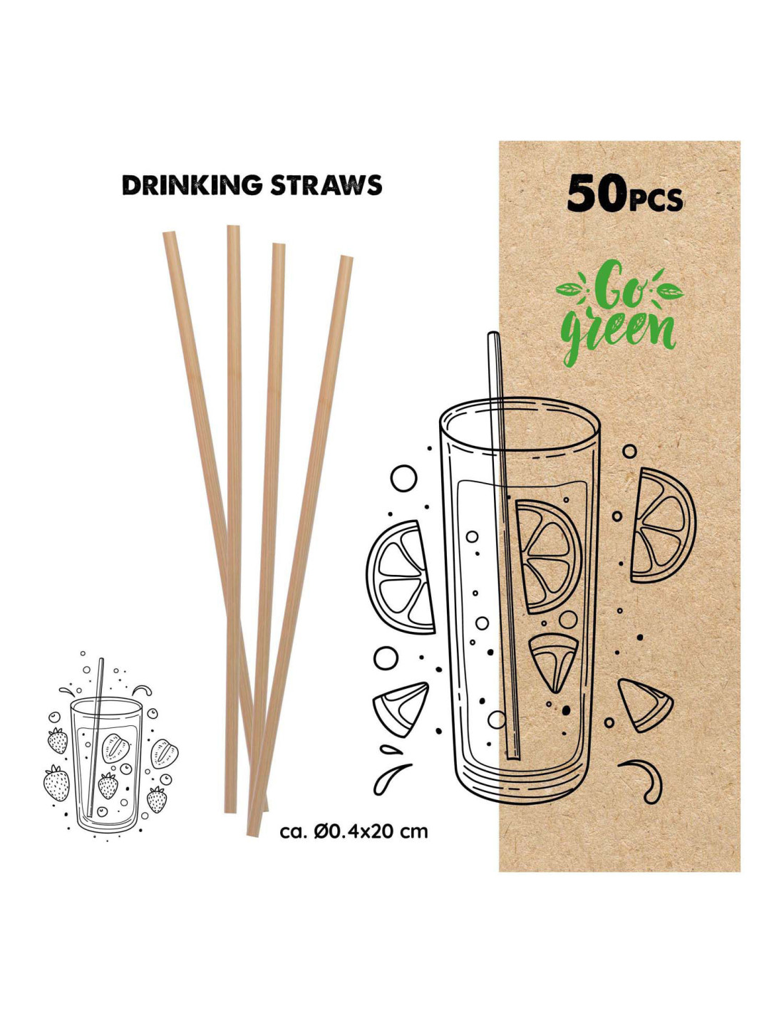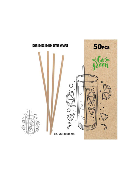 Set van 50 drinkrietjes gemaakt van 100% natuurlijke vezels. Wegwerprietjes geschikt voor eenmalig gebruik. Deze rietjes worden niet zacht/slap!