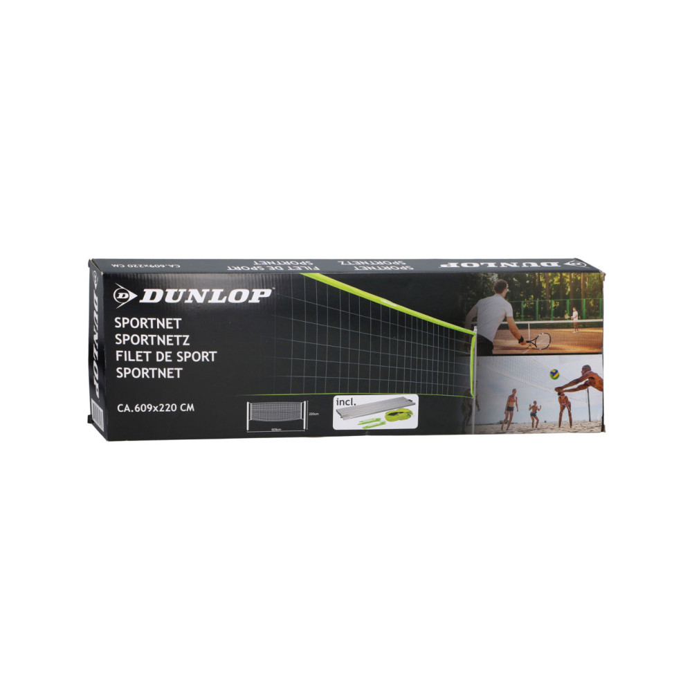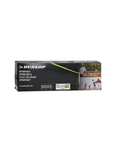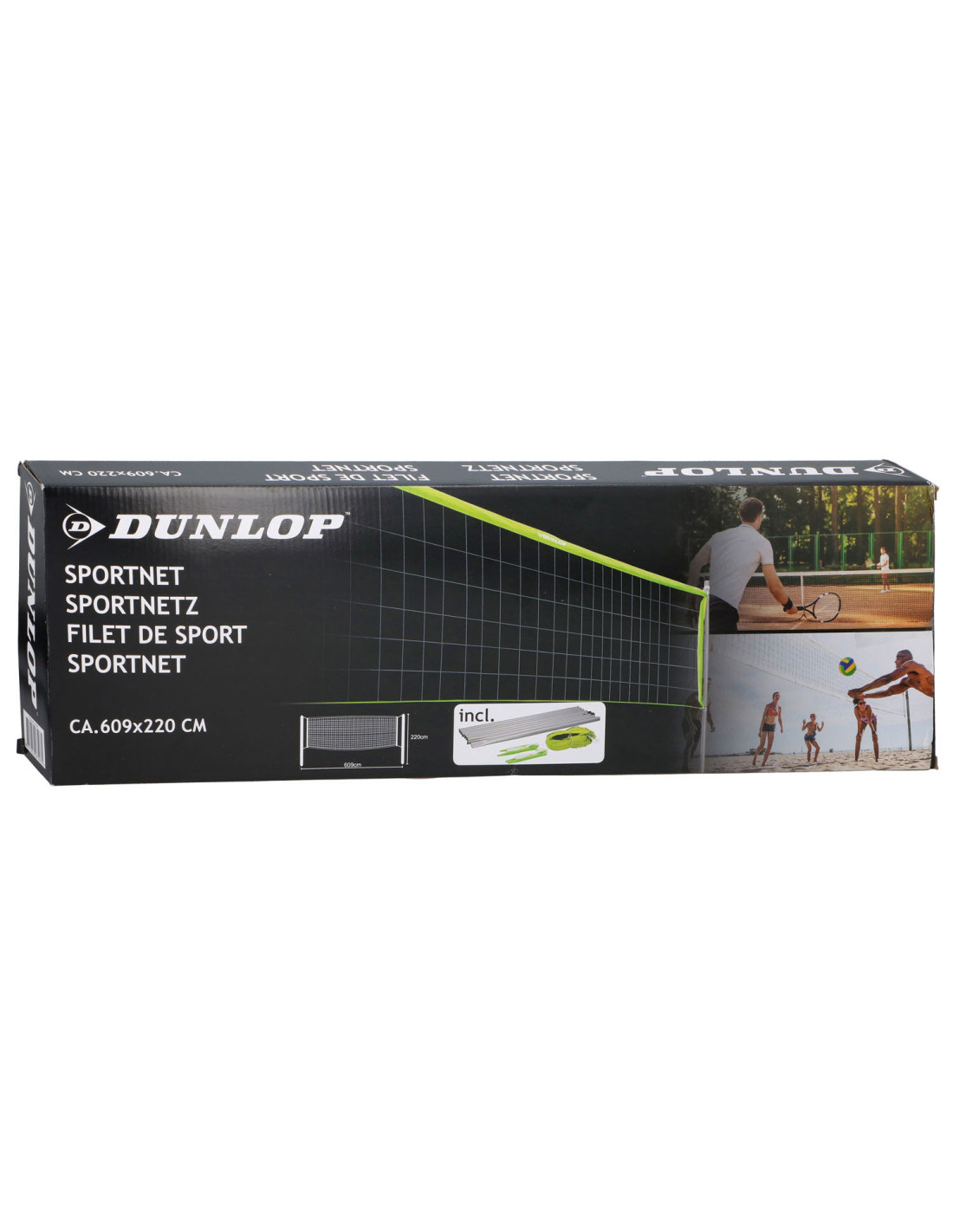 Stevig Sportnet van Dunlop. Geschikt voor een potje tennis, volleybal of badminton. Het sportnet zet je snel en eenvoudig op. De maximale hoogte van het net is 220 cm. De lengte van het net is 609 cm. Inhoud: een nylon net, 2 stalen staanders, 4 haringen en spankoorden.