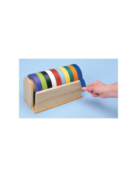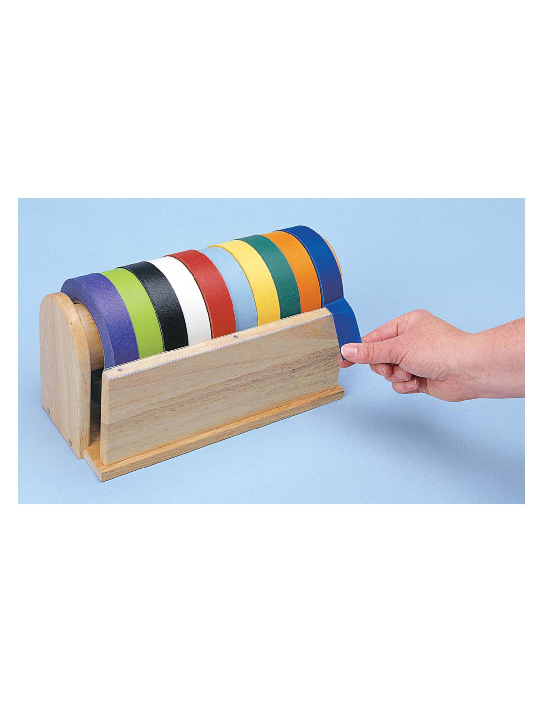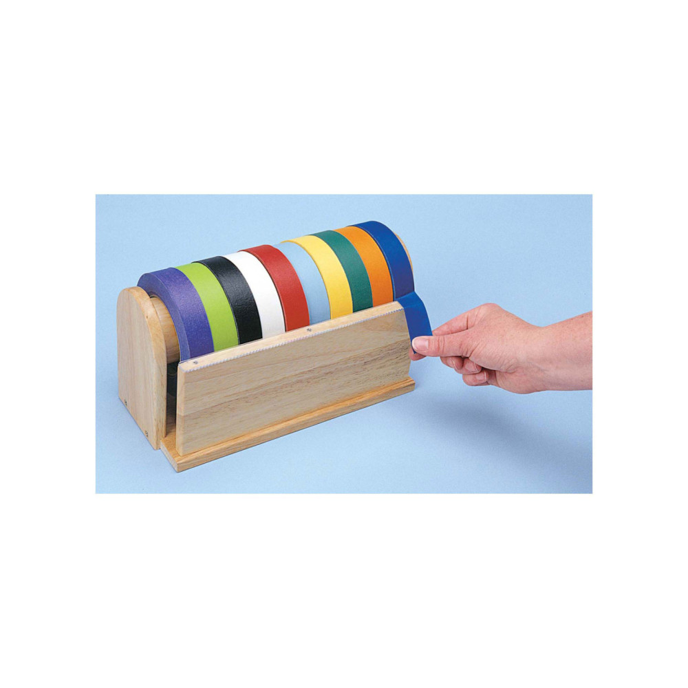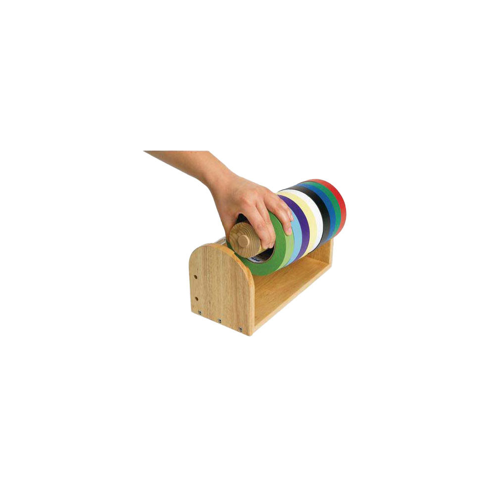 Houd tot 10 rollen gekleurde afplaktape netjes met deze duurzame houten tapedispenser. Dankzij dit exclusieve, eenvoudig te laden ontwerp kun je rollen met één snelle beweging toevoegen en verwijderen - schuif de middelste koker gewoon in en uit langs de groeven. De gekartelde kunststof rand is veilig voor kinderen, maar snijdt de tape gemakkelijk af. Geschikt voor alle tapes met een hartafstand van 7,5 cm; de dispenser is 29 cm lang x 12,5 cm diep x 15 cm hoog. Tape wordt apart verkocht.
