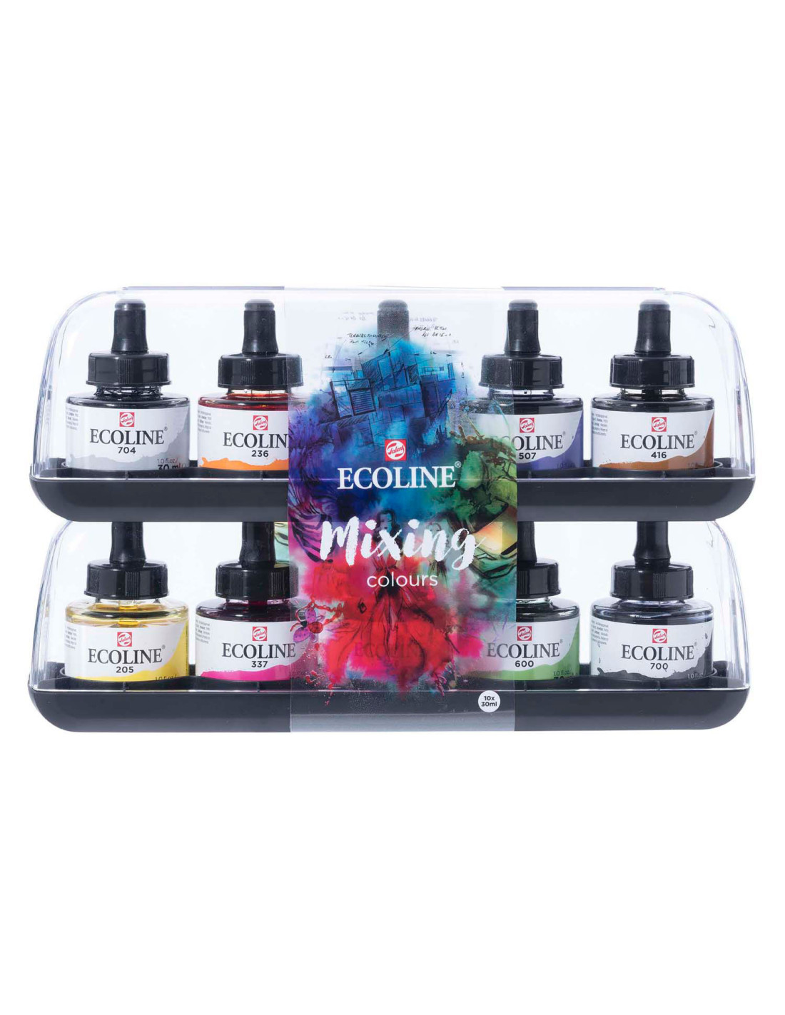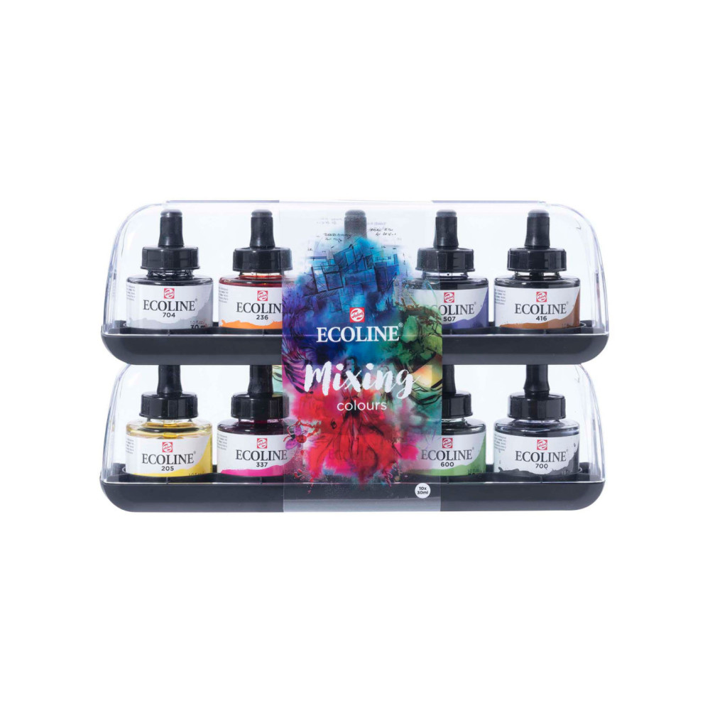 Deze set bevat 10 flesjes Ecoline vloeibare waterverf in verschillende heldere kleuren. De ronde Ecoline flesjes zijn stabiel en hebben een brede opening, zodat je direct uit de flesjes kunt werken met een penseel of pen. Daarnaast zijn de flesjes voorzien van een handige pipet waarmee je Ecoline gemakkelijk kunt doseren in mengbakjes of rechtstreeks aan kunt brengen op je kunstwerk. De transparante kleuren bieden de beste resultaten bij gebruik op wit of zeer lichtgekleurd papier.