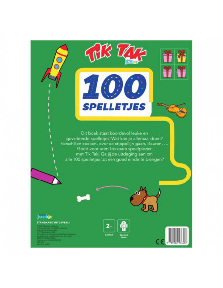 Een dik boek met 100 leuke en gevarieerde spelletjes op kleutermaat. Verschillen zoeken, over de stippellijn gaan, kleuren, eenvoudige puzzels oplossen … Goed voor uren leerzaam speelplezier met Tik Tak!