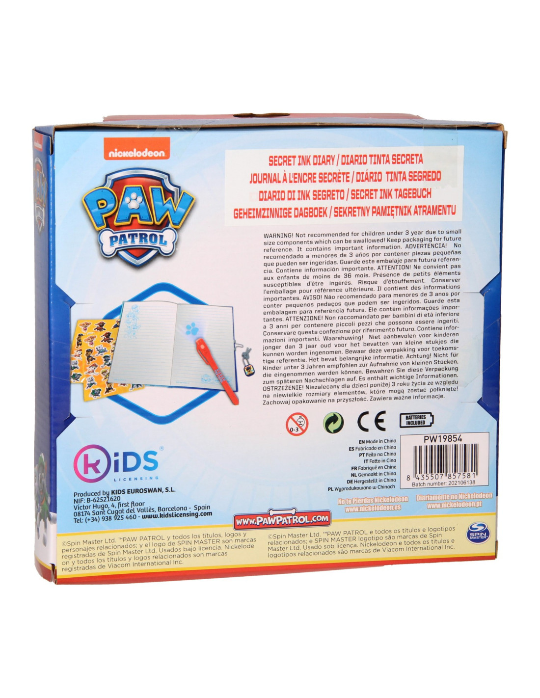 Dagboek met stickers en geheimschrift pen met lamp van PAW Patrol, dagboek met slot.