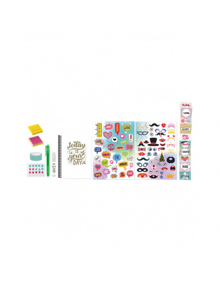 Dagboek om selfies in te plakken inclusief pen, lijm, washi tape, stickers, selfie stempel, stempelkussen en dagboek.