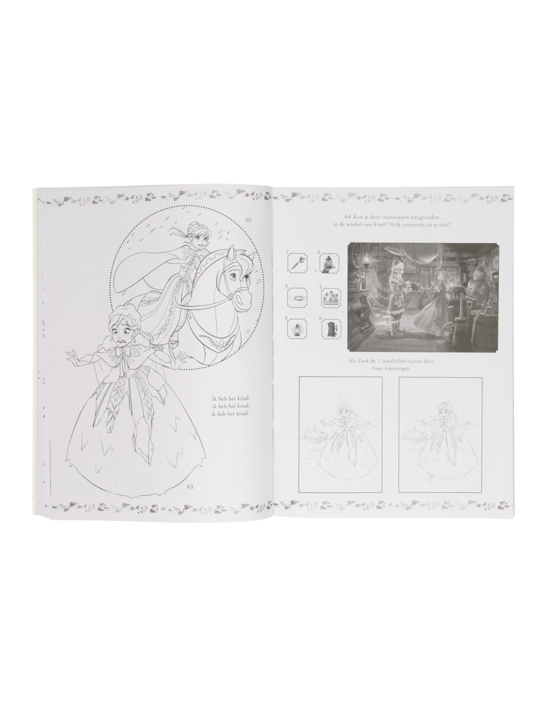 Spelletjes- en activiteitenboek met 365 leuke spelletjes en kleurplaten in Frozen-thema. Gemaakt van papier, het boek heeft A4-formaat. De spelletjes zijn Nederlandstalig. Geschikt voor kinderen vanaf 5 jaar oud.