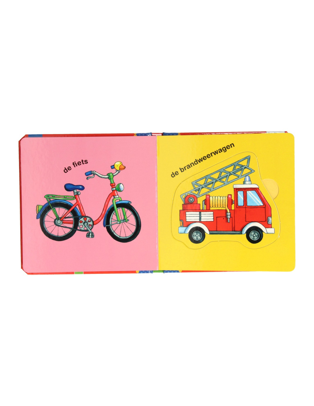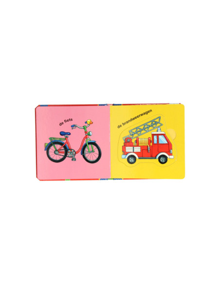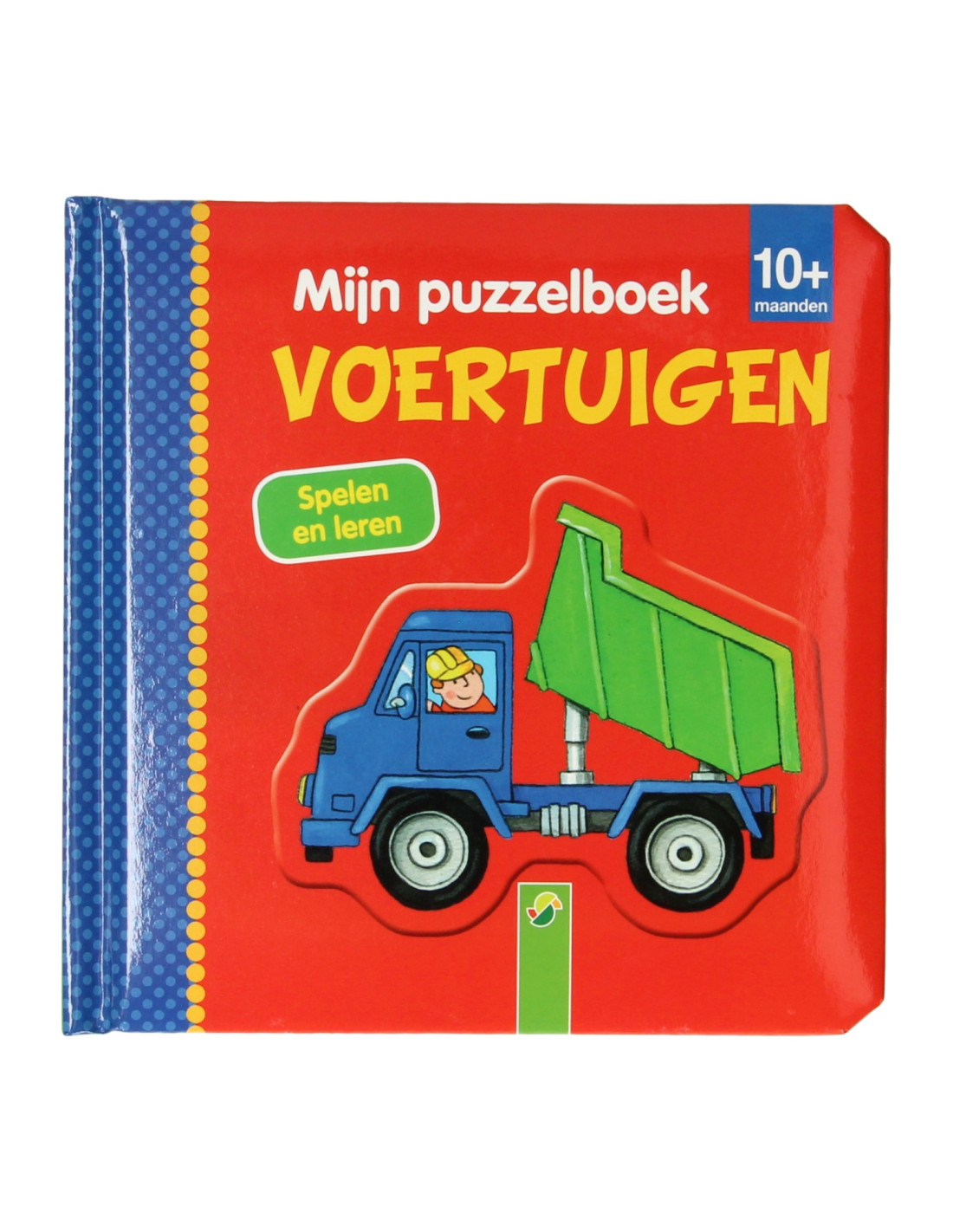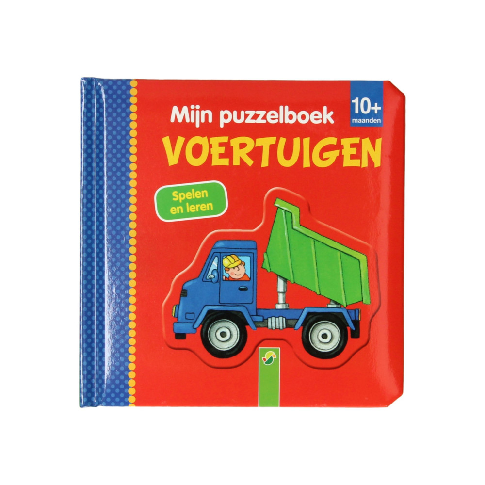 Kartonnen puzzelboek 'Voertuigen' met 4 uitneembare puzzelstukken die de fijne motoriek verbeteren. Geschikt voor kinderen vanaf 10 maanden.