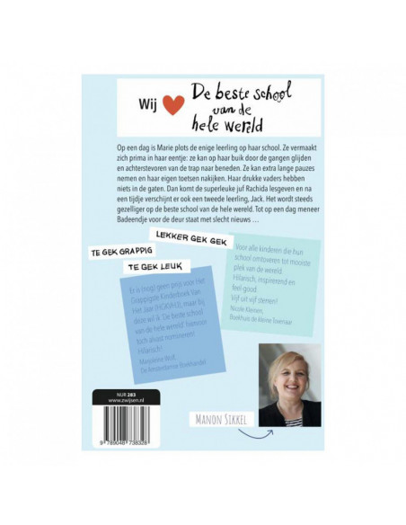 Supergrappige graphic novel over Marie die plots de enige leerling op haar school is. Ze vermaakt zich uitstekend in haar eentje en haar drukke vaders hebben verder nergens erg in. Op een dag komt de aardige juf Rachida lesgeven en na enige tijd verschijnt er ook een tweede leerling, Jack. Het wordt zo steeds gezelliger, het is eerlijk waar de beste school van de hele wereld!