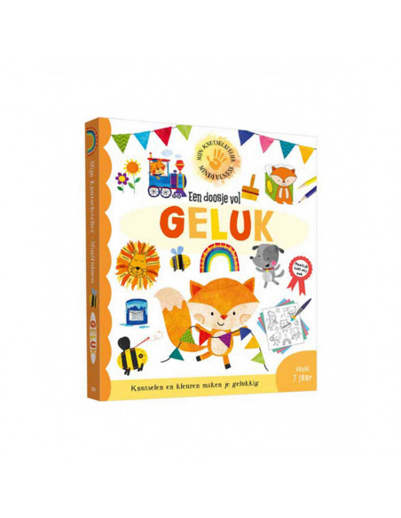 Dit doosje bevat kleurbladen, stickers en alles wat je nodig hebt om kaarten, motivatiemedailles, slingers en grappige vilten dieren te maken.