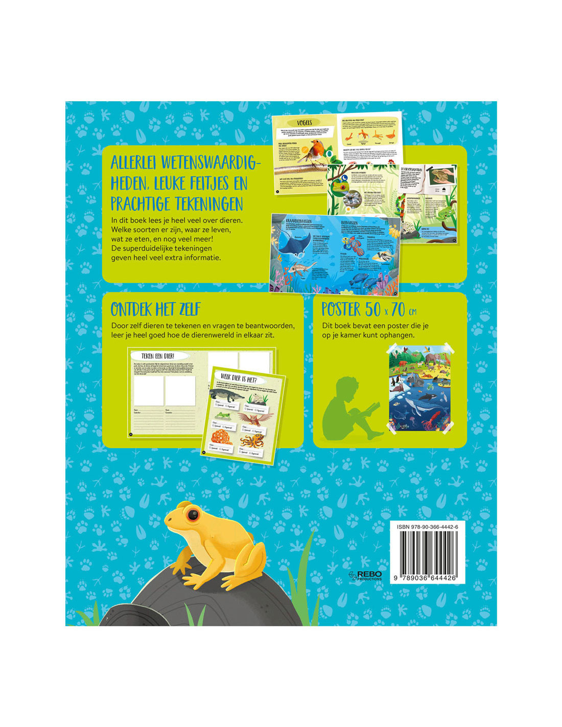 Allerlei wetenswaardigheden en feitjes over dieren, met duidelijke illustraties en een poster.