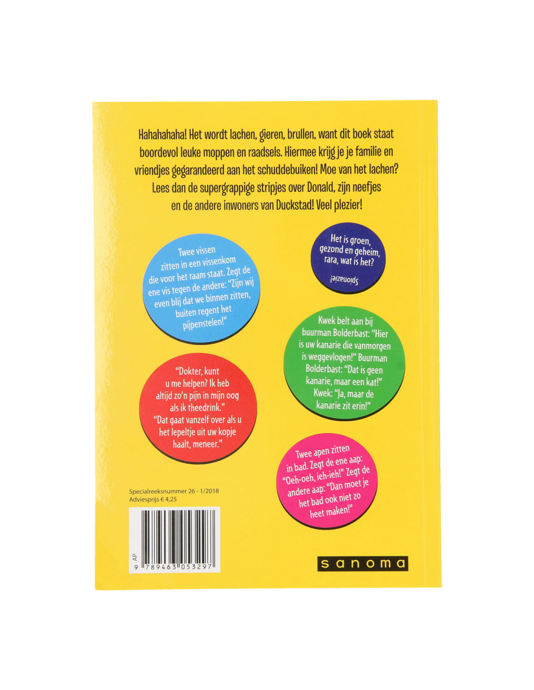 Hahahahaha! Het wordt lachen, gieren, brullen, wat deze boeken staat boordevol leuke moppen en raadsels. Hiermee krijg je je familie en vriendjes gegarandeerd aan het schuddebuiken! Moe van het lachen? Lees dan de supergrappige stripjes over Donald, zijn neefjes en de andere inwoners van Duckstad! Veel plezier!