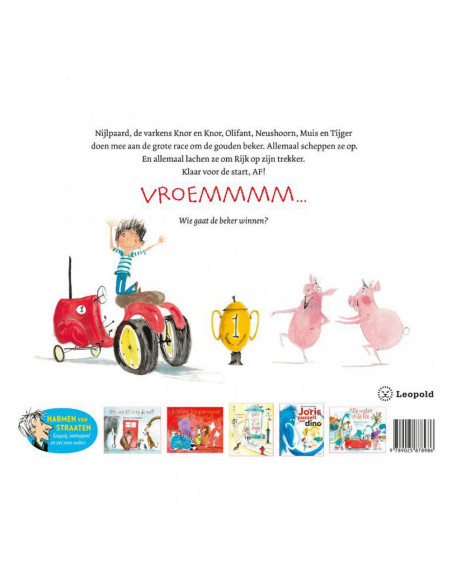 Vrolijk prentenboek op rijm van Harmen van Straaten, bekend van Hé, wie zit er op de wc?, Wat rijmt er op stoep?, Retteketet, We gaan nog niet naar bed!, Joris puzzelt een dino en Alle wielen in de file.