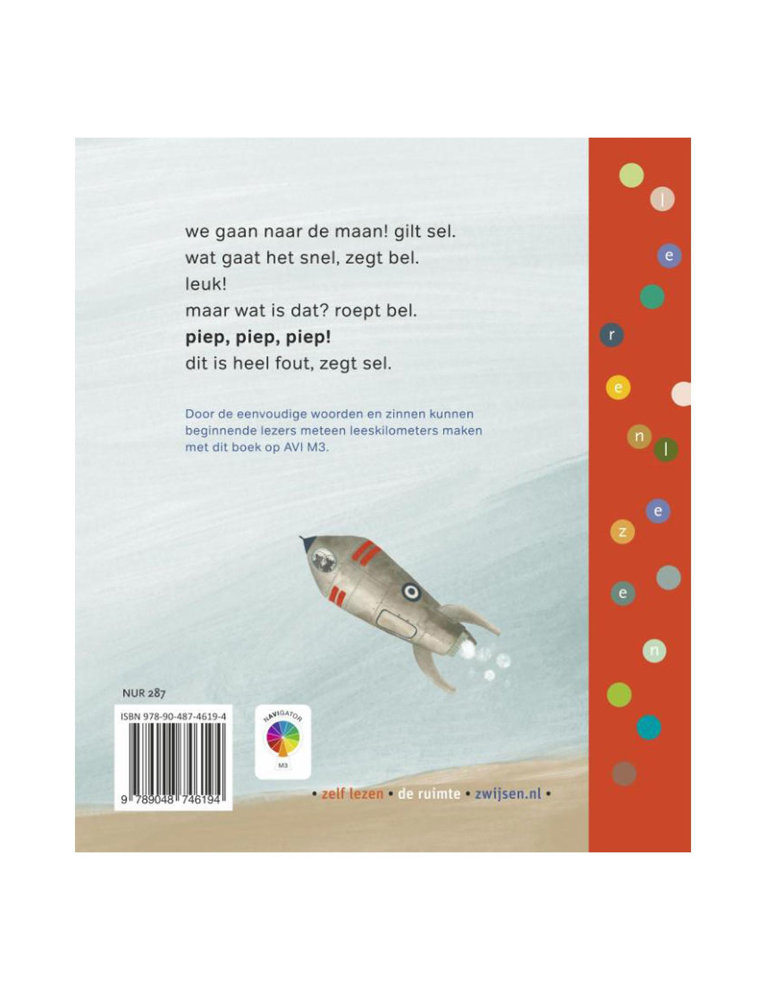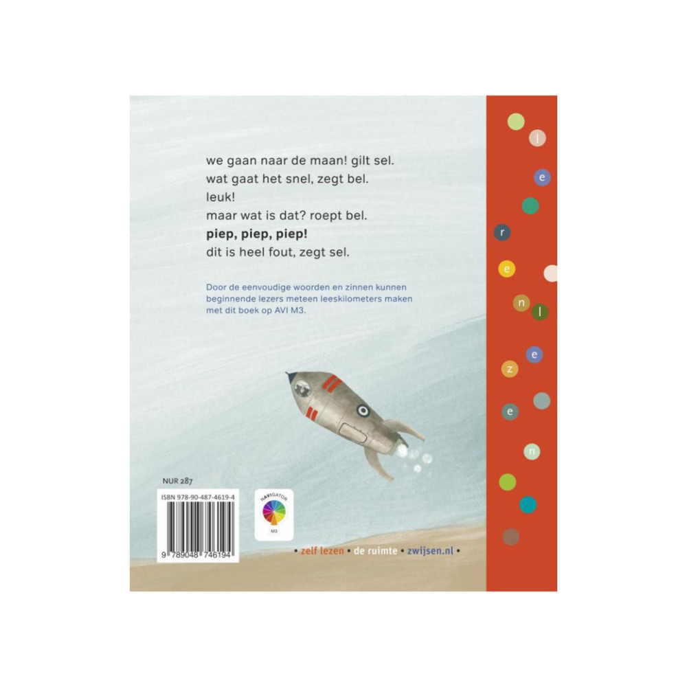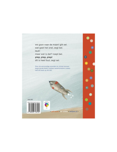 Bel en Sel gaan op reis naar de maan, maar dan begint er van alles te piepen als dat maar goed gaat! Spannend verhaal op AVI M3 voor beginnende lezers.