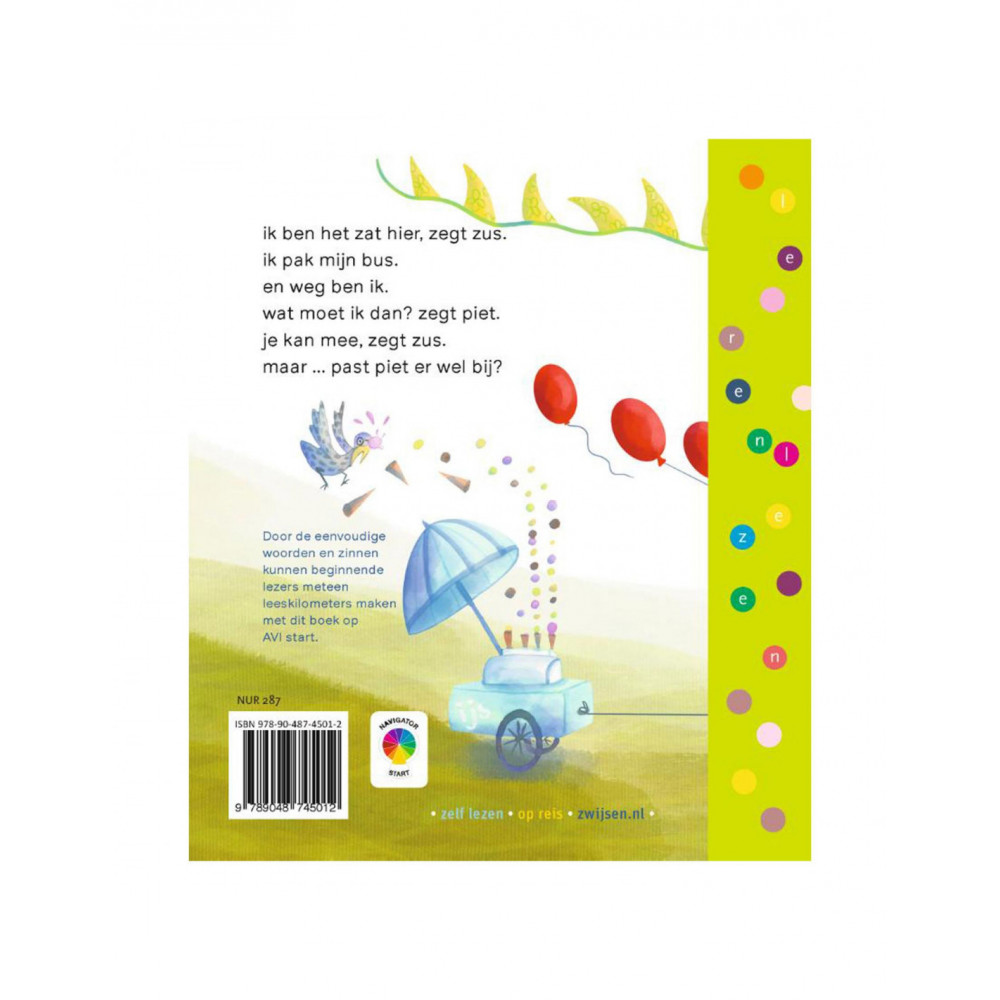 Zus gaat op reis met haar bus. Past Piet er wel bij in de volle bus? En wie komen ze onderweg nog meer tegen? Grappig verhaal over een gezellige reis op AVI Start. Iedere beginnende lezer in groep 3/leerjaar 1 wil laten zien hoe goed hij al kan lezen. Hoe leuk is het om dat te laten zien met dit herkenbare verhaal vol korte woorden en eenvoudige zinnen? Dat is nog eens leuk leeskilometers maken.