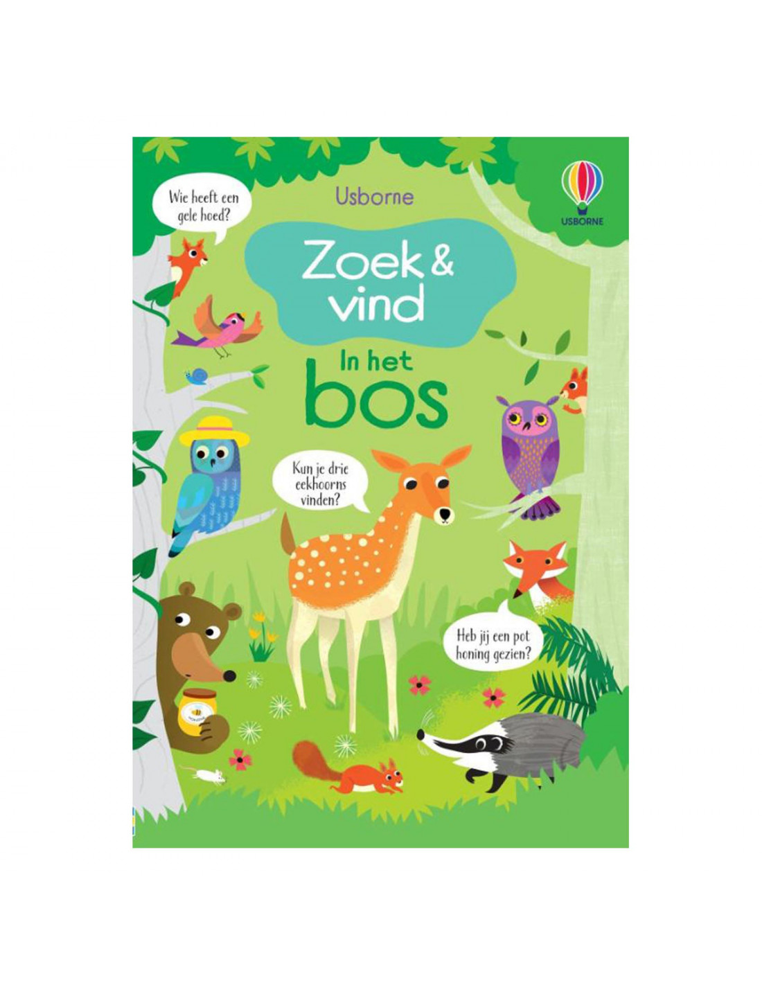 Heerlijk boek vol bosdieren en andere dingen om over te praten, te vinden, te tellen en bij elkaar te zoeken. Bij elke illustratie geven dieren de lezer zoekopdrachten en op elke pagina is een wit muisje verstopt.