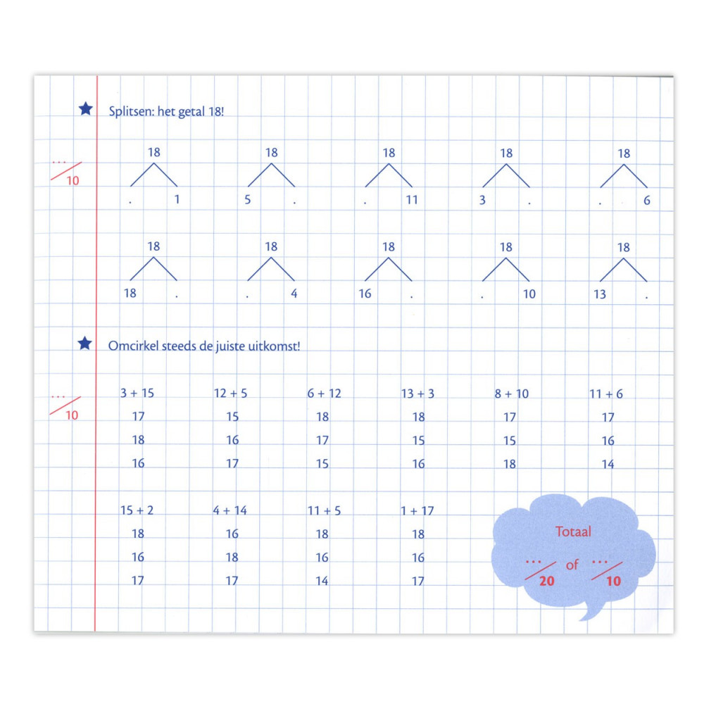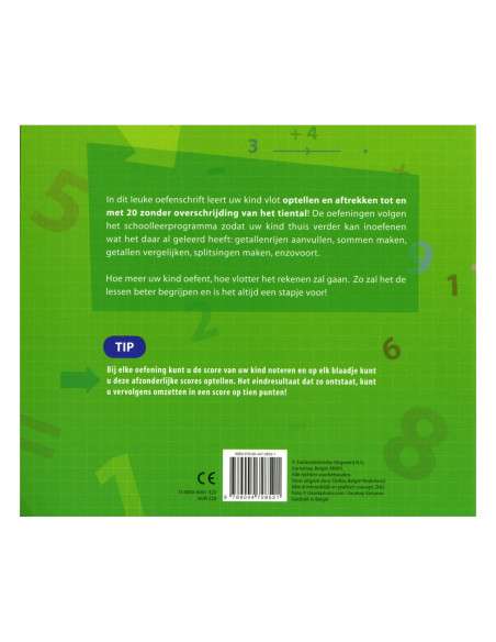 In dit leuke oefenschrift leert uw kind vlot optellen en aftrekken tot en met 20 zonder overschrijding van het tiental! De oefeningen volgen het schoolleerprogramma zodat uw kind thuis verder kan inoefenen wat het daar al geleerd heeft: getallenrijen aanvullen, sommen maken, getallen vergelijken, splitsingen maken, enzovoort.