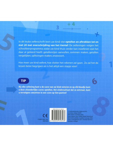 In dit leuke oefenschrift leert uw kind vlot optellen en aftrekken tot en met 20 zonder overschrijding van het tiental! De oefeningen volgen het schoolleerprogramma zodat uw kind thuis verder kan inoefenen wat het daar al geleerd heeft: getallenrijen aanvullen, sommen maken, getallen vergelijken, splitsingen maken, enzovoort.