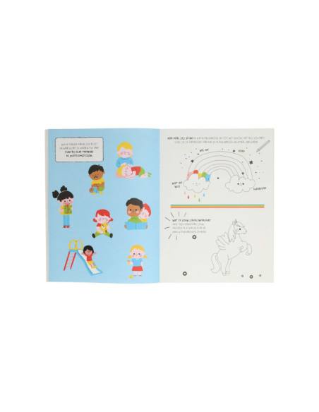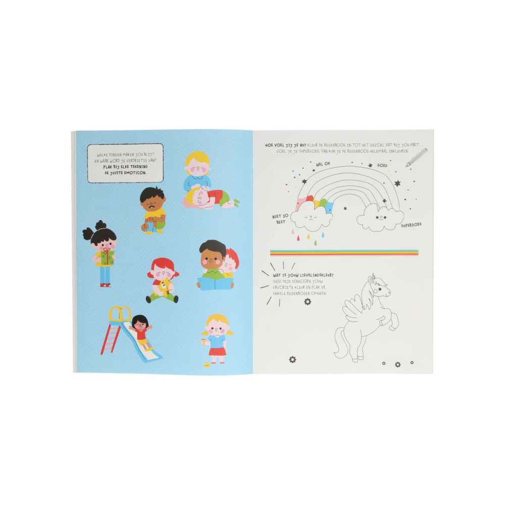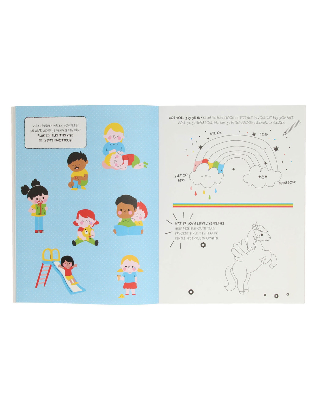 Creatief stickerboek waarin kleine kinderen naar hartenlust kunnen tekenen, kleuren en spelen. Met de stickers kunnen ze de schattige tekeningen nog verder versieren!