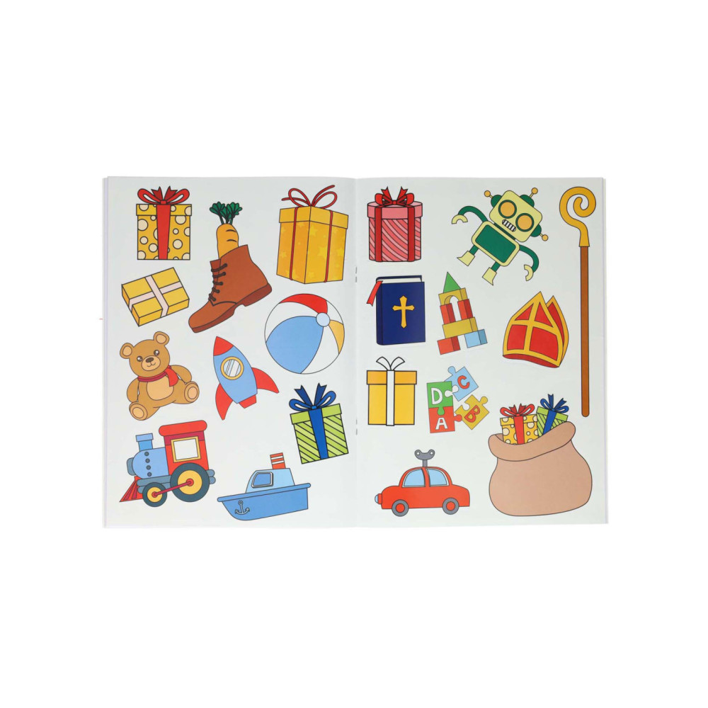 Sticker- en kleurboekboek met Sinterklaasthema. Geschikt voor kinderen vanaf 3 jaar. Het formaat van het boek is 29 x 21 cm.