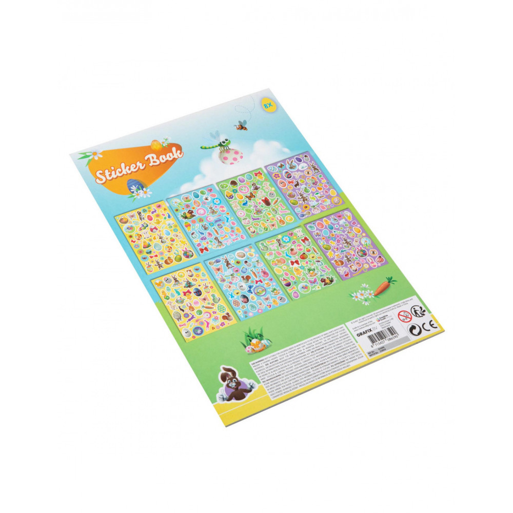 Laat je creativiteit bloeien met het Paasstickerboek! Dit A4-formaat stickerboek is een waar feest voor liefhebbers van vrolijke en kleurrijke stickers. Met 8 pagina's vol schattige afbeeldingen, variërend van vlinders en paashazen tot schaapjes en bloemen, biedt dit boek eindeloze mogelijkheden om je knutsel- en tekenprojecten te verfraaien.