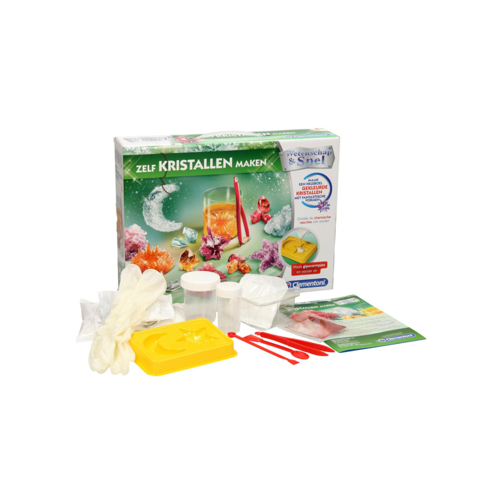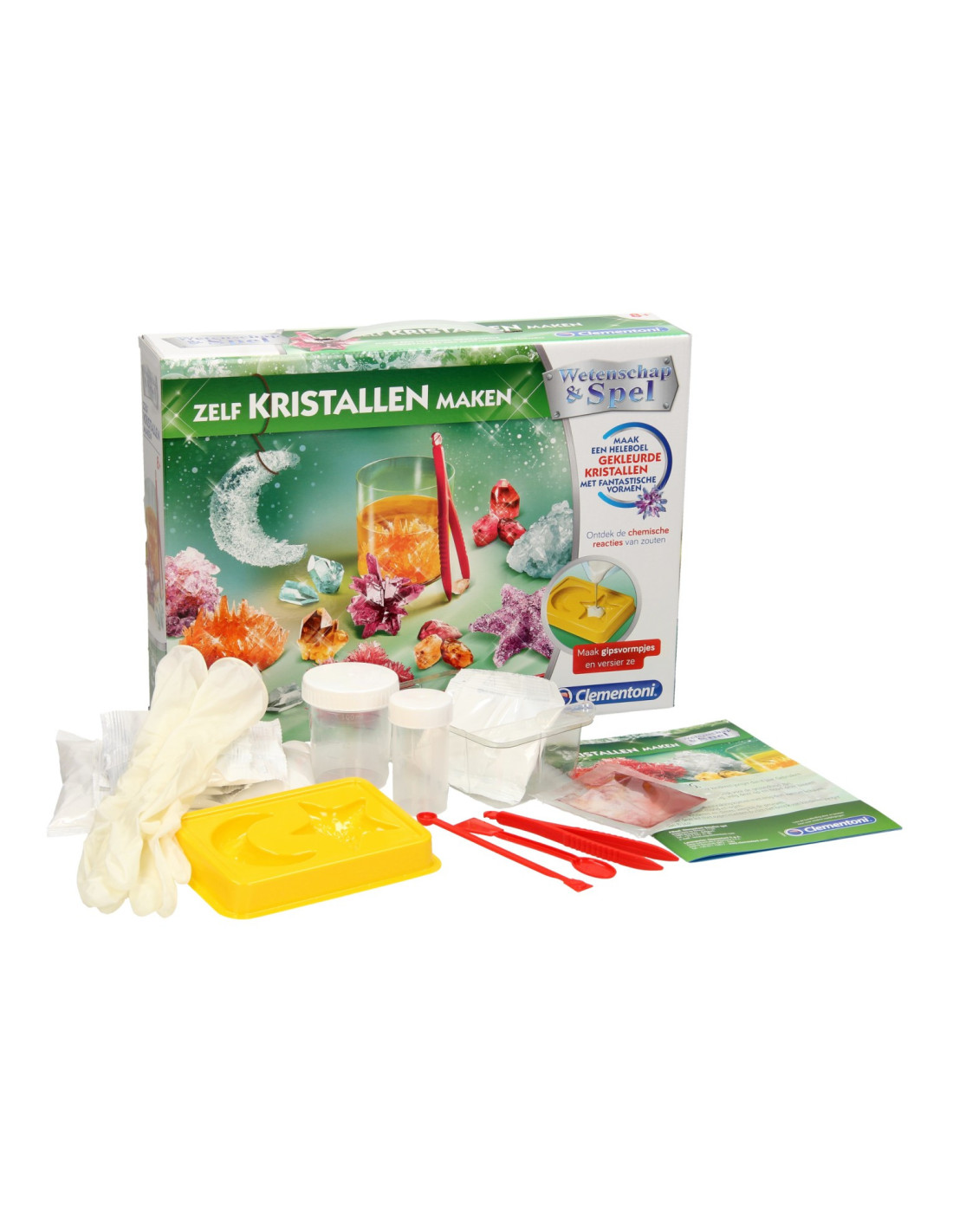 Dit fascinerende laboratorium heeft alles wat je nodig hebt om ongelofelijke witte en gekleurde kristallen te maken. Een unieke set om de chemische reacties van zout te ontdekken en fonkelende vormen te creëren! De handleiding helpt kinderen bij de verschillende stappen van de experimenten zodat zij in alle veiligheid kunnen spelen.