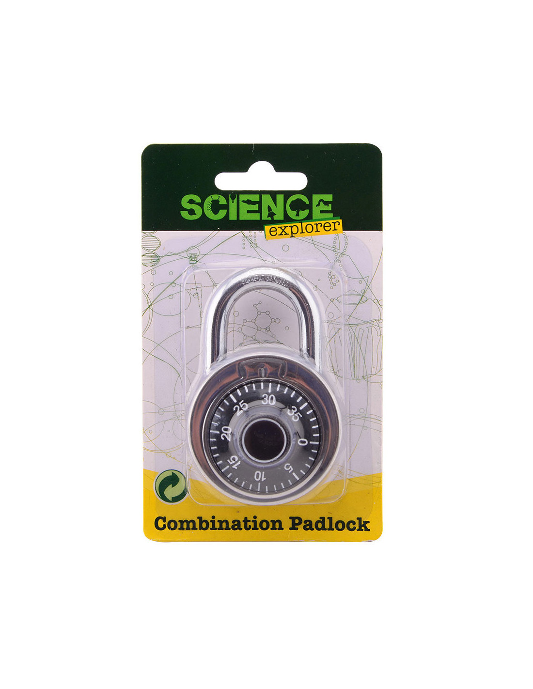 Sterk hangslot van metaal en kunststof met een cijfercombinatie. De code van het slot staat op de achterkant en kan niet worden aangepast.