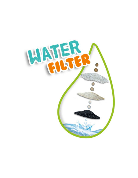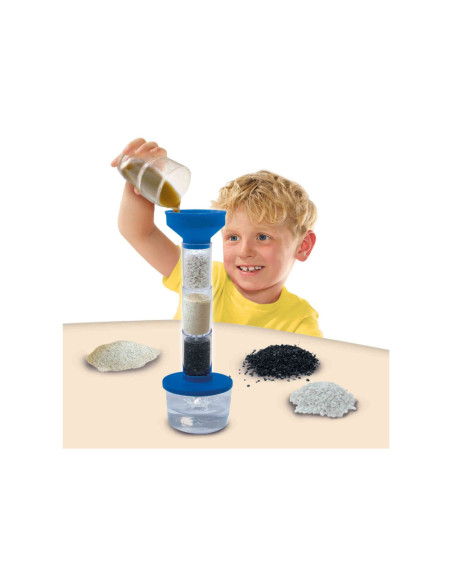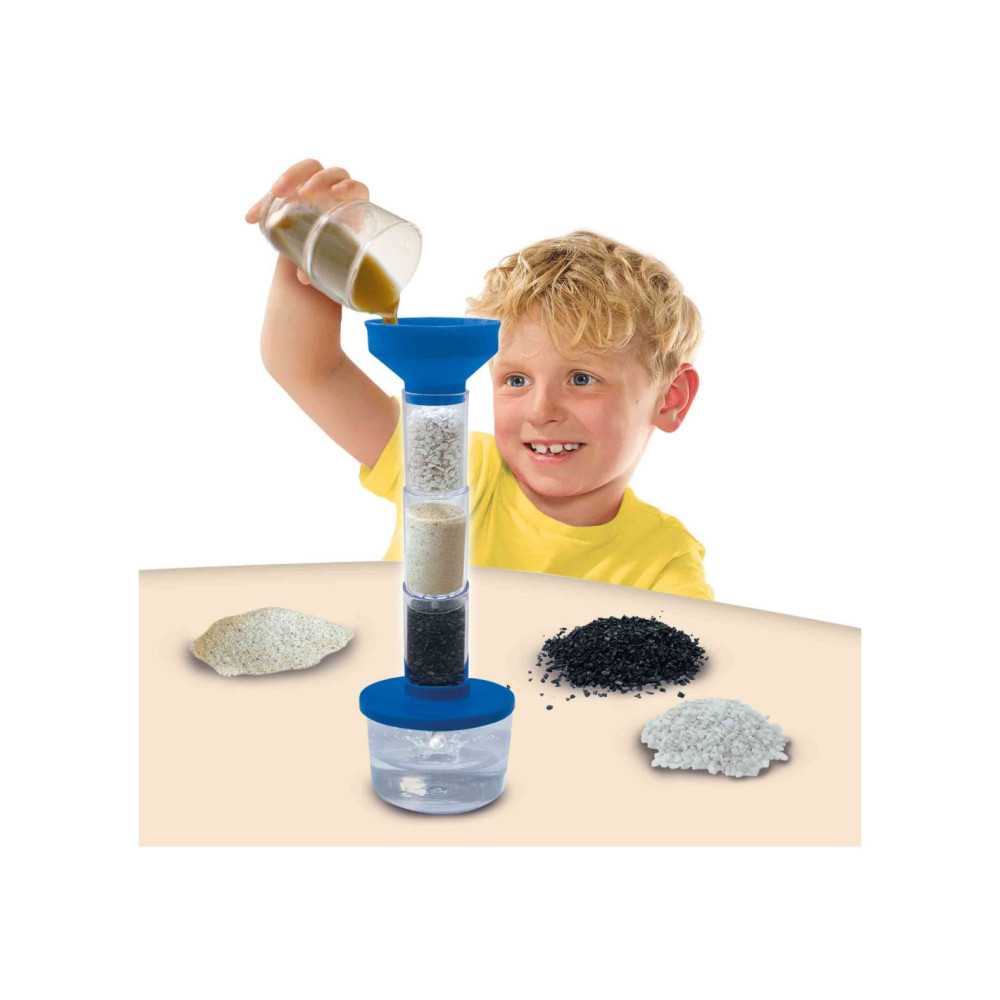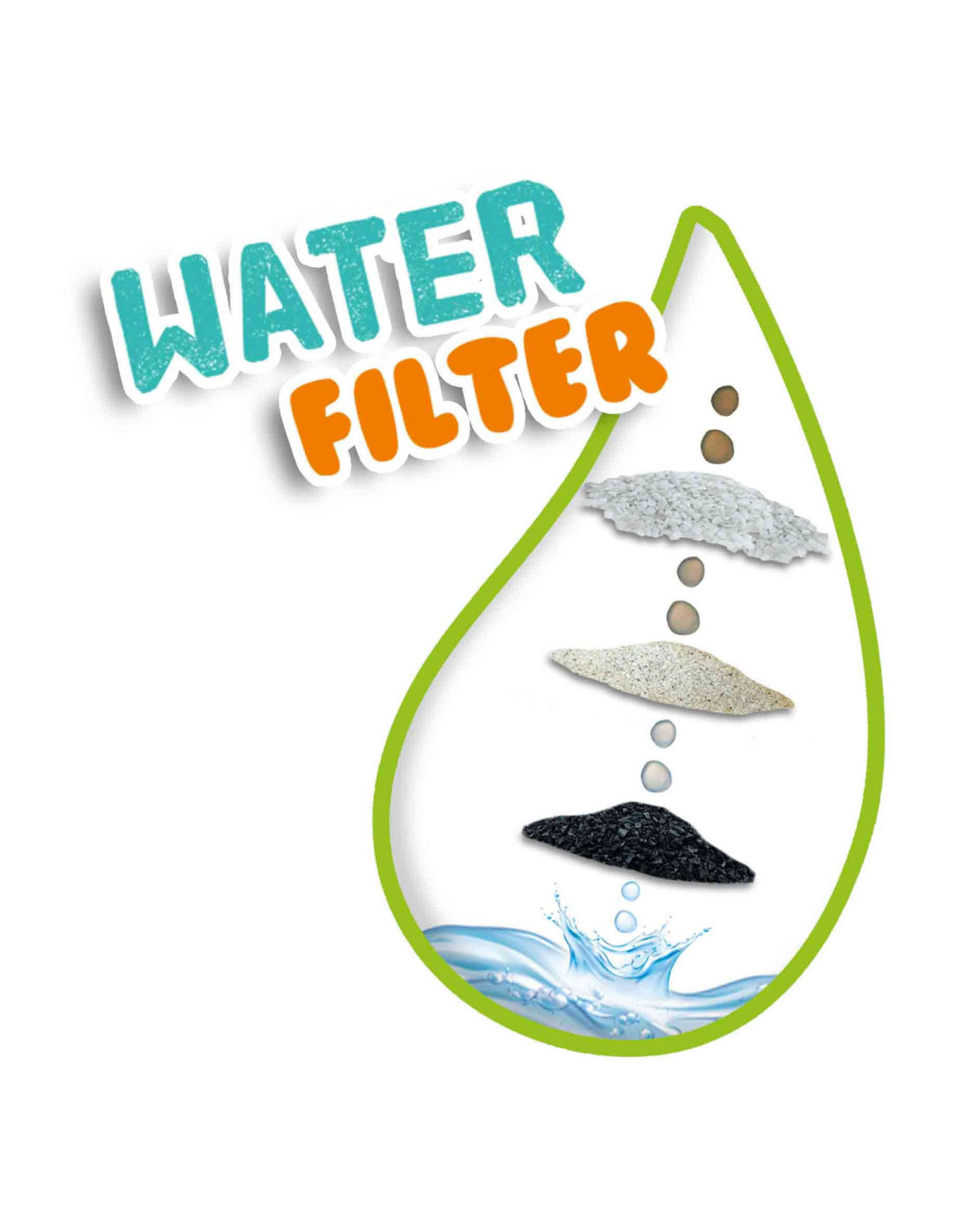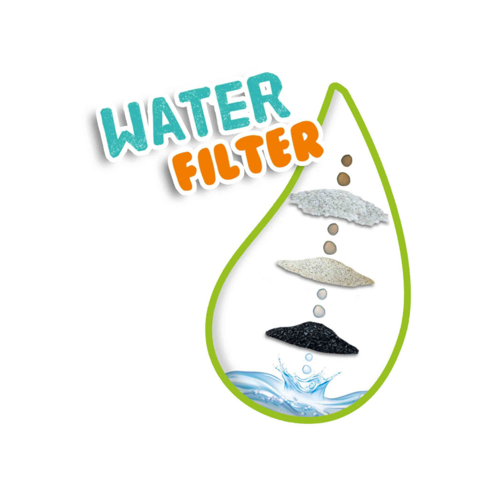 Ga op onderzoek! Met de Explore waterfilter maken kinderen kennis met de wetenschap en natuur. Water uit de vijver of sloot: het mag allemaal door de 6-delige waterfilter. Bouw samen de 6-delige waterfilter op en kijk hoe het water door de verschillende lagen van de filter stroomt. De steentjes, zand en de koolstof filteren namelijk het water stap voor stap! Zo worden groffe takjes en vervuilingen uit het water gehaald. Dit educatieve S.T.E.M.-speelgoed zal het verzamelde water filteren en resulteren in een helder eindresultaat!