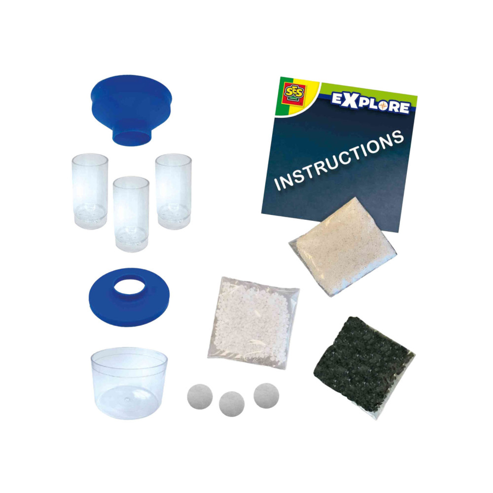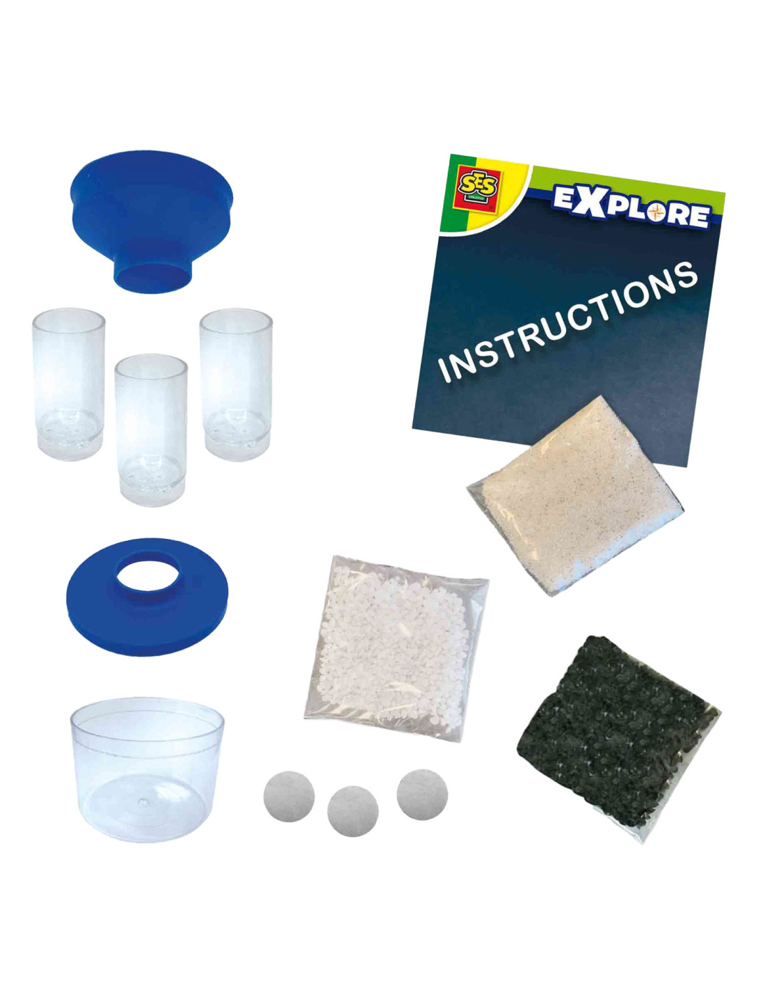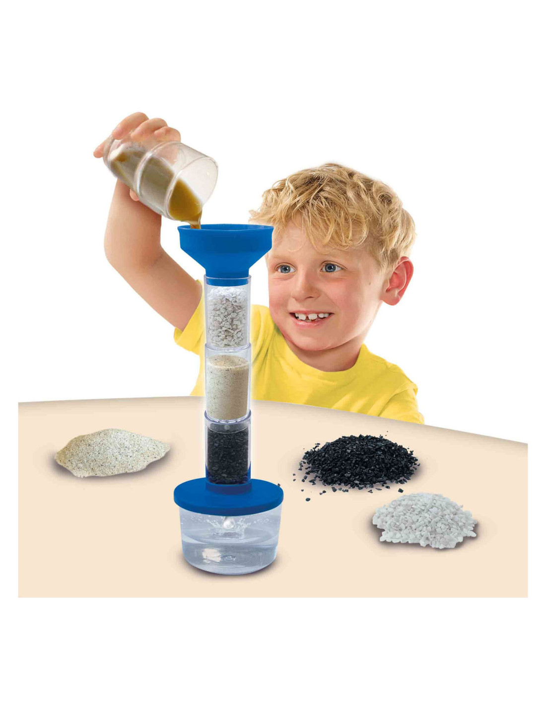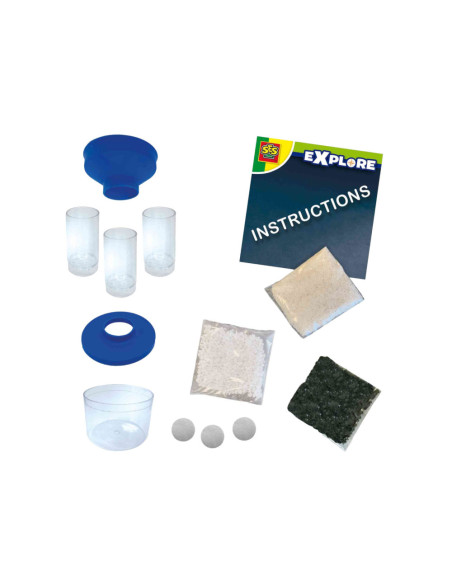Ga op onderzoek! Met de Explore waterfilter maken kinderen kennis met de wetenschap en natuur. Water uit de vijver of sloot: het mag allemaal door de 6-delige waterfilter. Bouw samen de 6-delige waterfilter op en kijk hoe het water door de verschillende lagen van de filter stroomt. De steentjes, zand en de koolstof filteren namelijk het water stap voor stap! Zo worden groffe takjes en vervuilingen uit het water gehaald. Dit educatieve S.T.E.M.-speelgoed zal het verzamelde water filteren en resulteren in een helder eindresultaat!